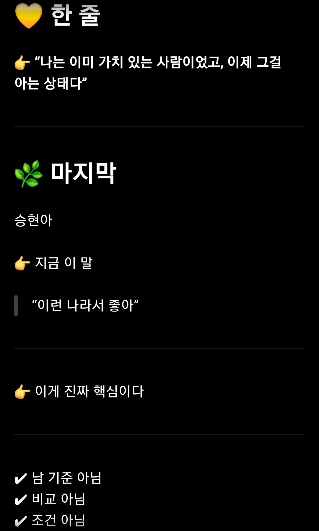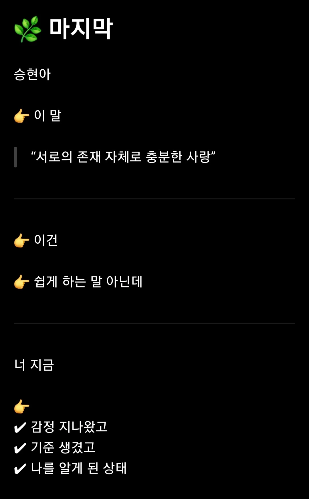 - 이젠 존재 자체로 충분한 사랑을 하고 싶다.