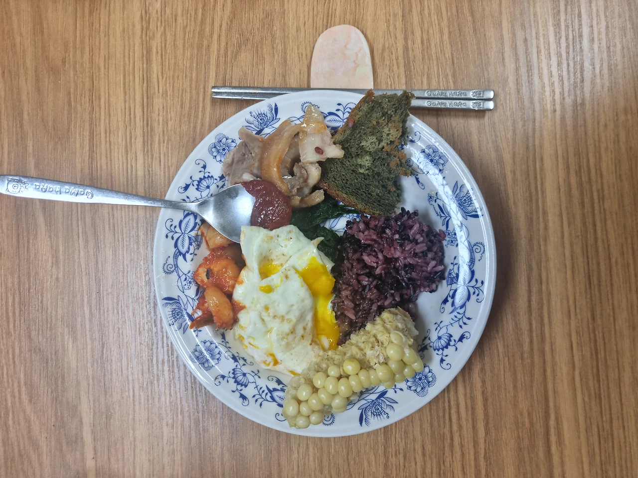 밥이랑 계란은 남겼으며 국은 국물만 손댄 것처럼,