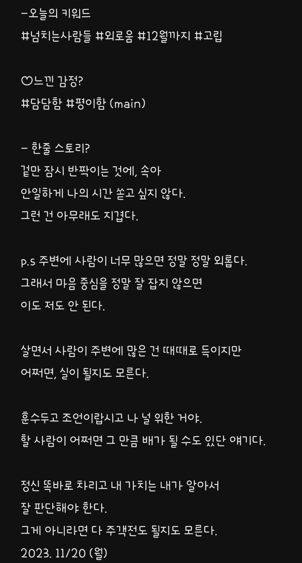 - 스스로를 고립시키는 건 지나치게 외롭지만 슬프진 않아 적어도.