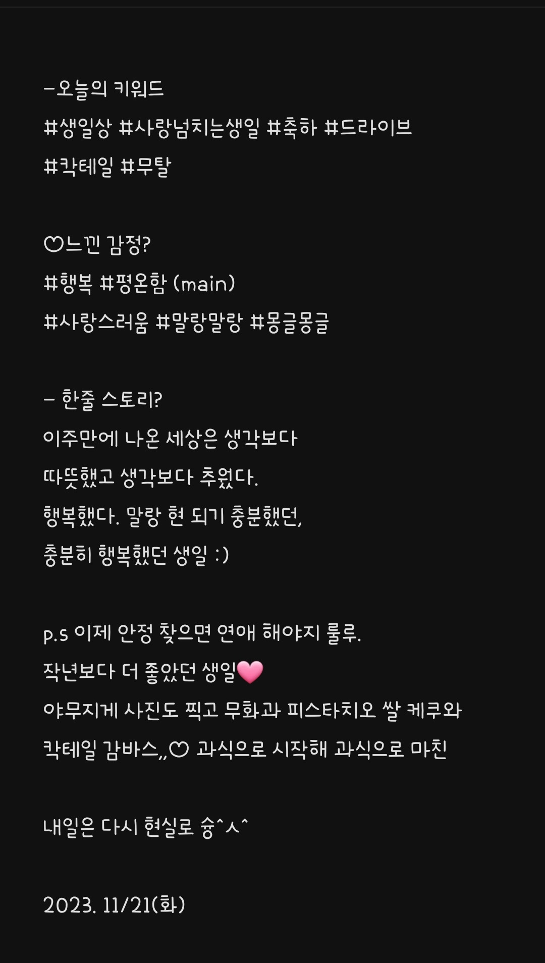 -혼자서도 잘하고 또 행복하고 무탈한, 아주 감성 넘치는 하루였다.