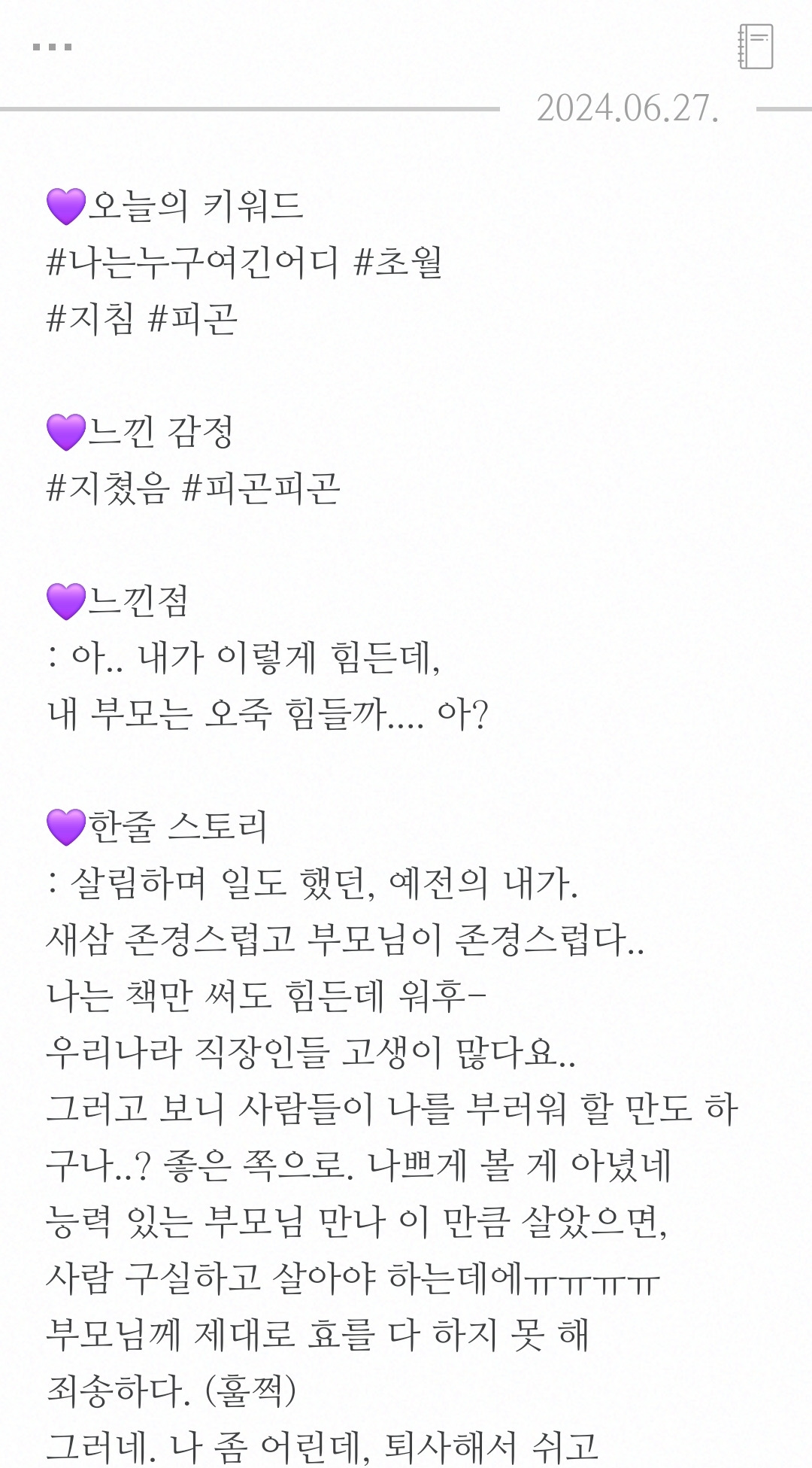 우는 대신 엄마 오늘도 고생했어. 아빠도.