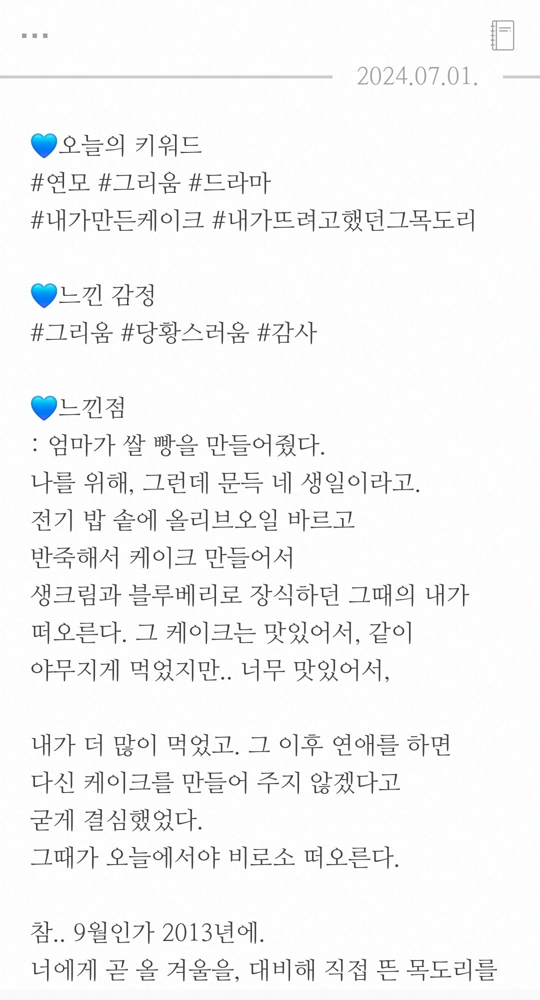- 오늘 떠오른 케이크, 그리고 사연 있는 목도리를 보고 앗, 했다.