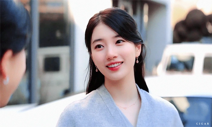 사랑스럽게, 활짝 웃으며.