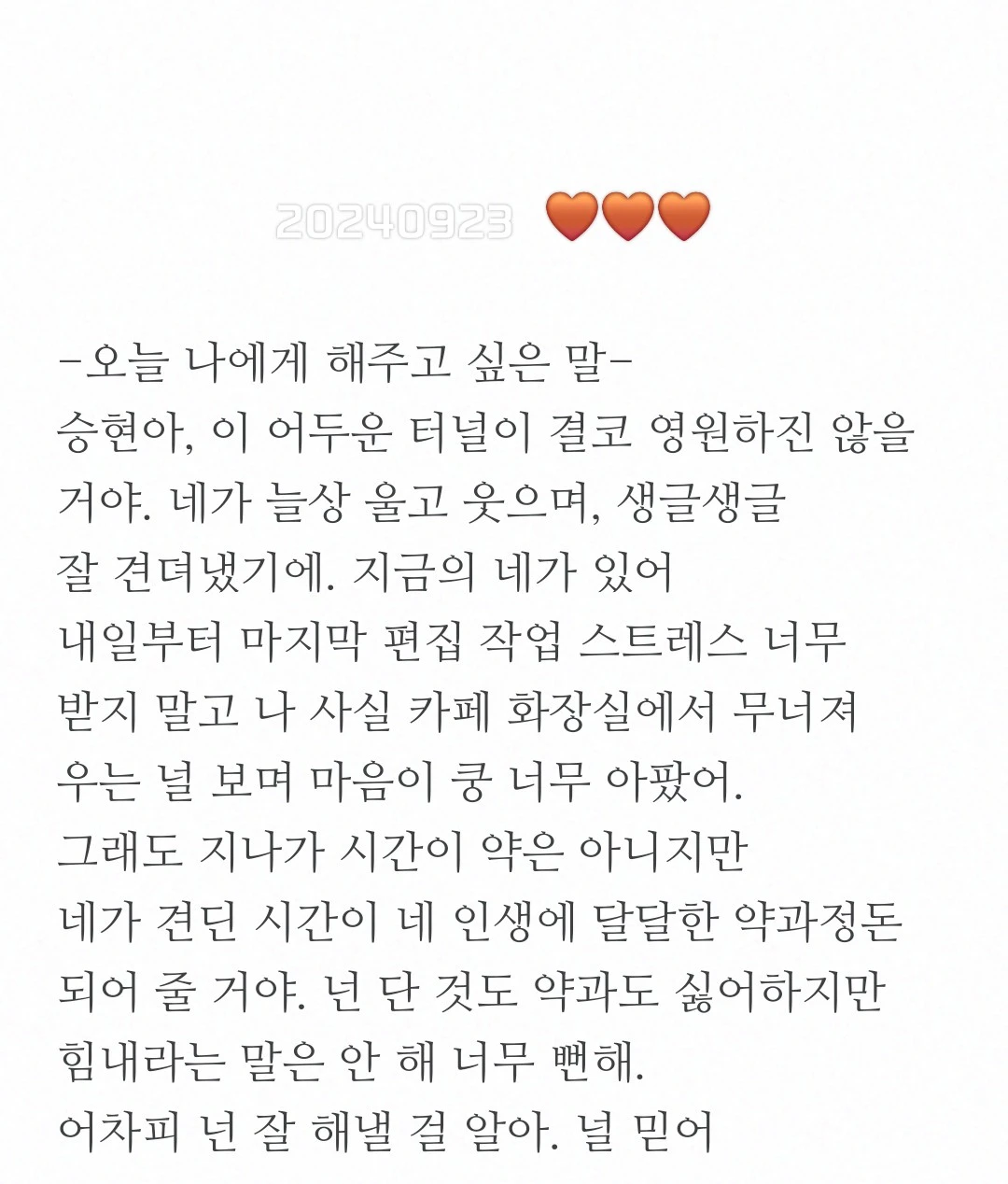 오늘 나에게 해주고 싶은 말