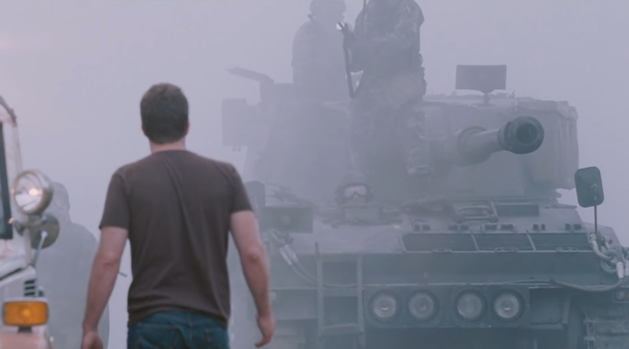 안개가 걷히며 들어서는 군용차량