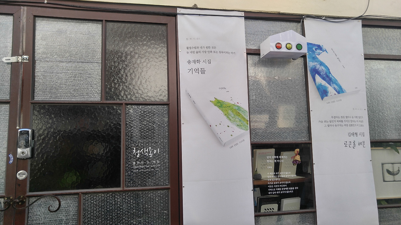 동네 서점들을 다니기 시작하면서 누군가와 약속을 잡을 때, 가게 될 동네에서 가까운 책방을 찾아 약속을 잡기 시작했다. 이번엔 오랜 친구를 문래예술촌에서 만나기로 했다. 문래예술촌 구경과 함께 이번의 목적지는 시집 전문 헌책방 '청색종이'다. 시인 김태형씨가 운영하는 곳이라고 했다.