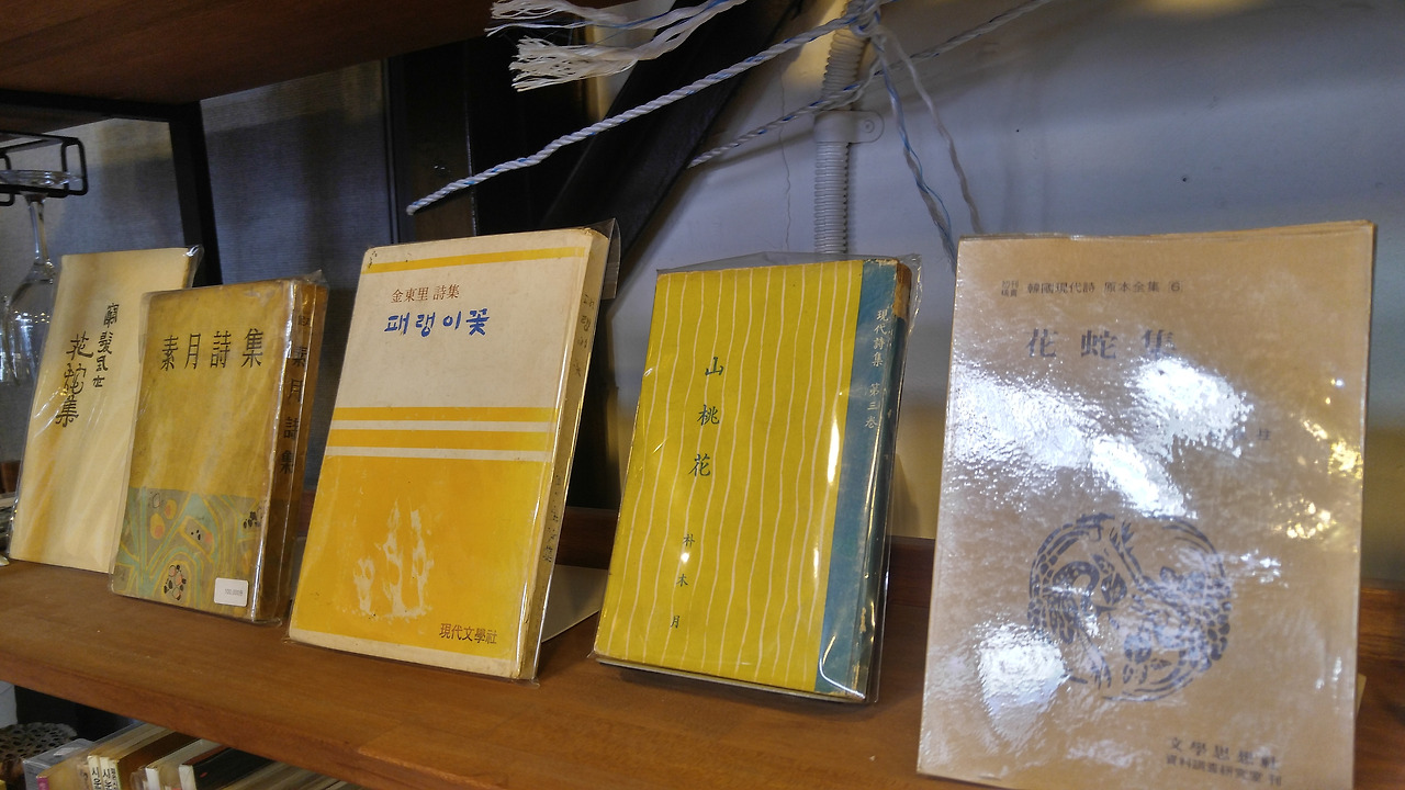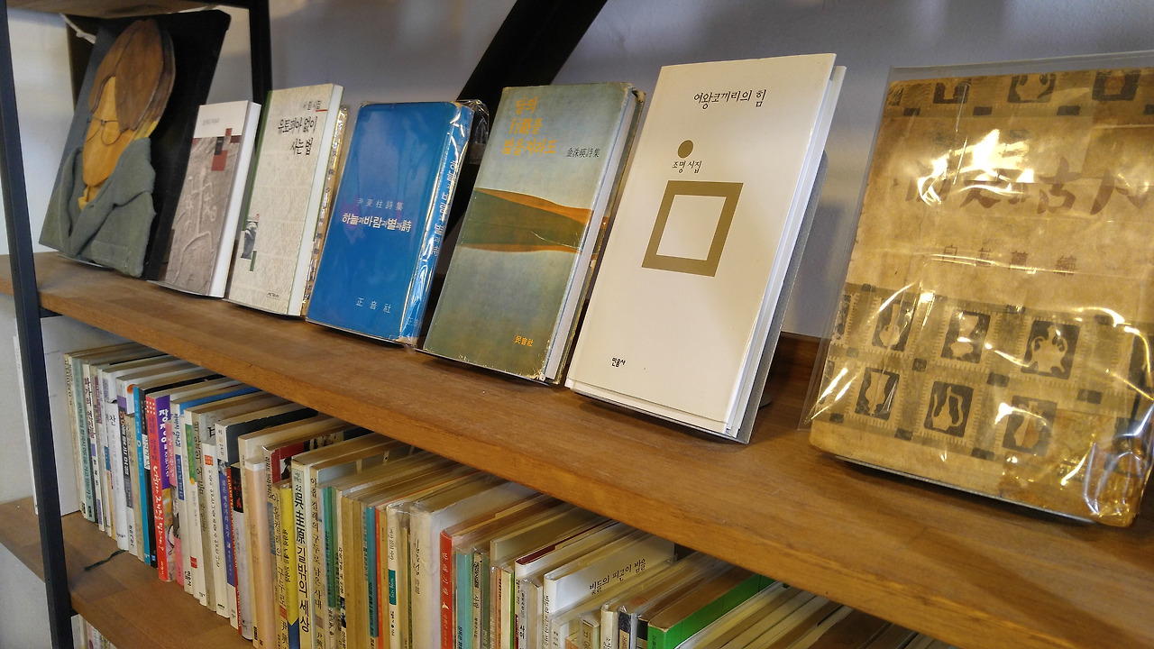 손때가 묻은 책들, 누군가의 이름과 메시지, 축하가 적혀있는 책들, 저마다의 역사를 가진 책들이 책장을 가득 메우고 있었다. 비록 시에 대해서 잘 안다고 할 순 없지만, 그 감성들과 단어들과 분위기엔 흠뻑 취할 수 있었다.