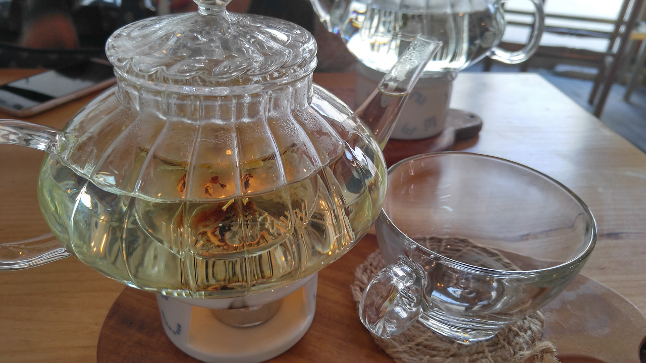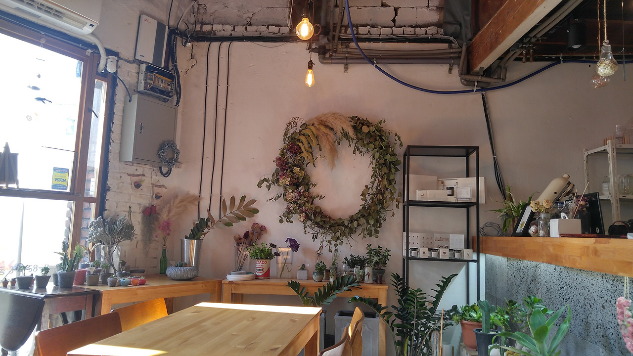 책방 구경을 마친 후 우리는 바로 건너편에 있는 꽃차 카페를 갔다. 카페 내부 디자인이 정말 맘에 들었다. (건물 외관은 깜빡하고 못찍었다.)