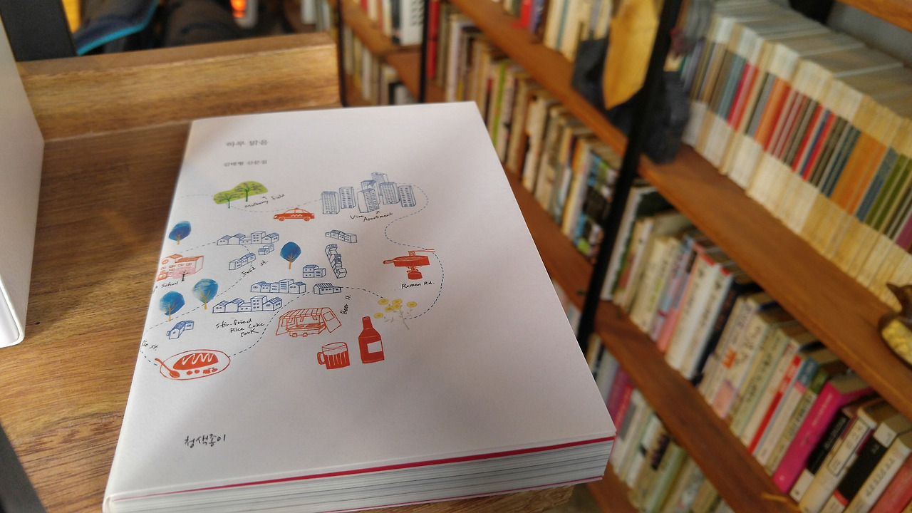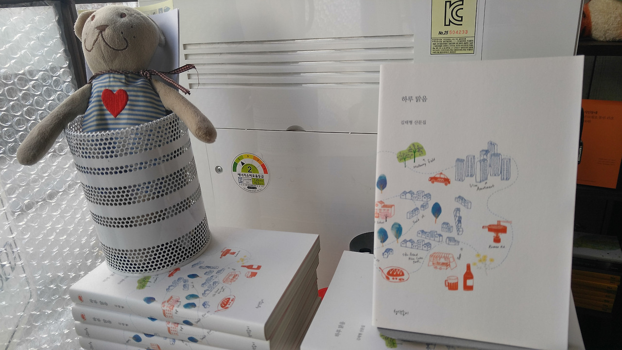 앞으로 서점을 들릴 때마다 책 학원씩을 사오는게 좋을 것 같다고 생각했다. 그 곳에서만 살 수 있는 특별한 책으로. 그래서 김태형시인의 산문집을 한 권 샀다. 책 제목은 '하루 맑음'. 책을 구입하자 책방지기님께서 대표님의 책이라고 소개해주셨다. ("그래서 살려구요."라고 답해줬다.) 그리고 우리가 들어가자 김동률의 노래를 틀어주셨는데 꽤나 책방의 분위기와 어울린다는 생각을 했다.