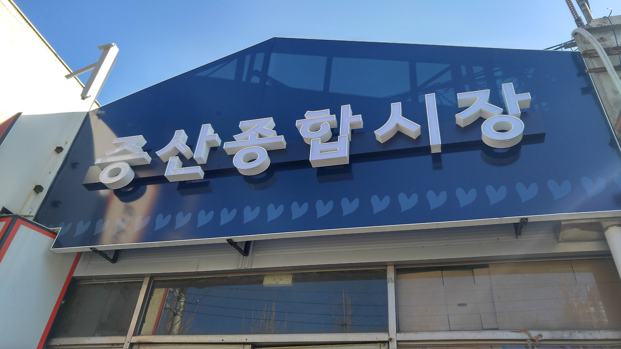 그렇게 찾아간 증산시장 앞에서 우리는 멈칫했다. 입구가 잘 안보였기 때문이다. 시장 바깥을 빙 둘러 입구를 찾아 우리는 들어갈 수 있었는데, 입구가 쉽게 들어갈만하게 생기진 않았다. 안에 무엇이 있는지 잘 보이지 않았기 때문이다. 증산시장앞에는 초등학교가 있었고, 그 뒤로 많은 아파트단지들이 있어 입지적으로는 좋아 보였다.