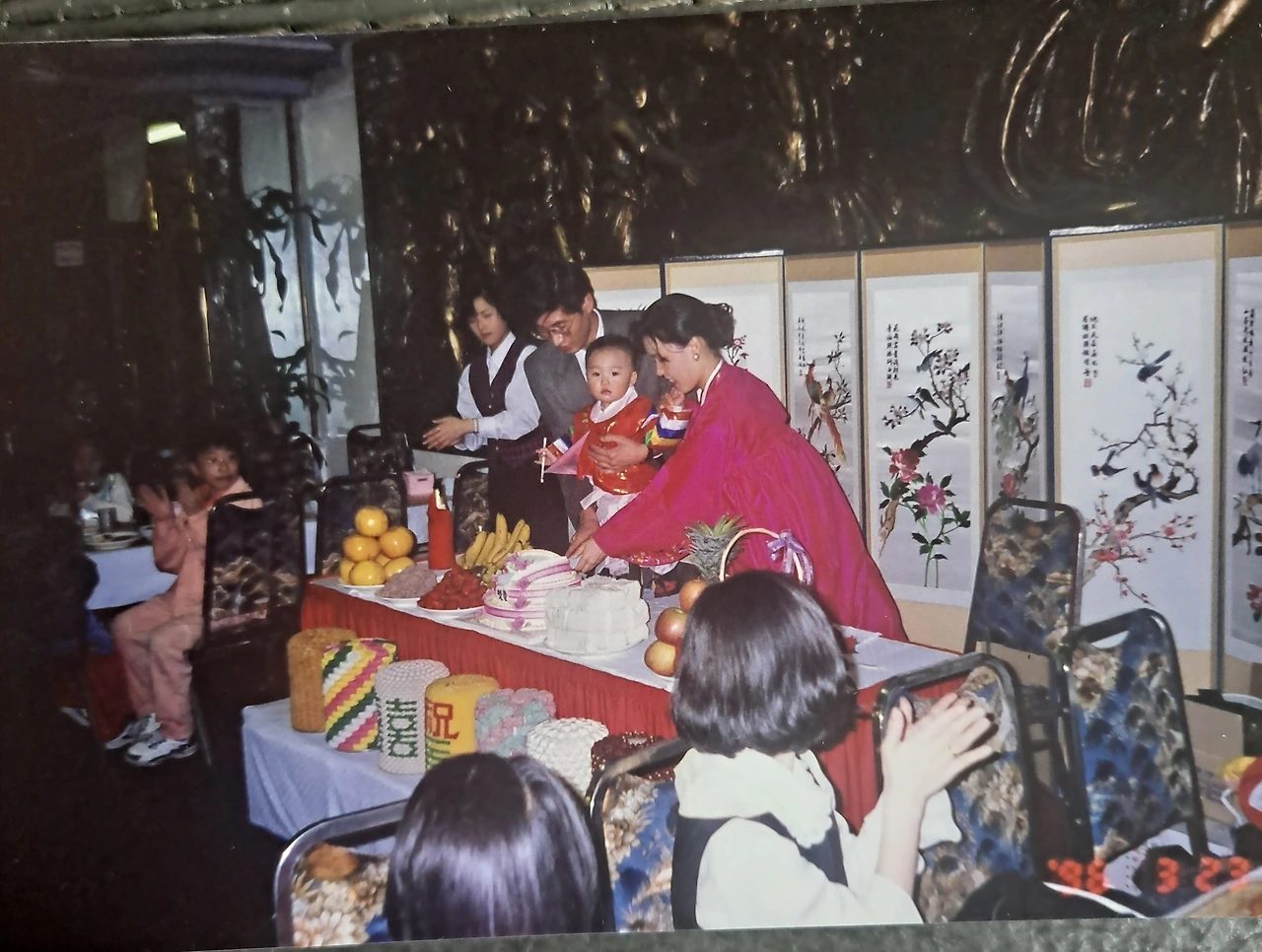 돌잔치 준비를 하다가 큰아이 때의 돌잔치 사진을 오랜만에 찾아보게 되었다. 지금은 찾기도 힘든 꽃분홍 한복에 올림머리를 한 여자가 색동저고리를 입은 볼 빨간 아기와 함께 웃고 있었다. 꽃분홍 한복 어디서 본 적이 있는데? 북한 늬우스 여자 앵커가 입고 있었던 것 같기도 하고... 뒤로 보이는 산수화 병풍까지. 흡사 70년대 아기 돌잔치 사진이라고 해도 전혀 의심 없이 믿을만한 사진이었다. 격세지감이 느껴지는 사진에 헛웃음이 나왔다. 이 정도로 세월이 흘렀다니......