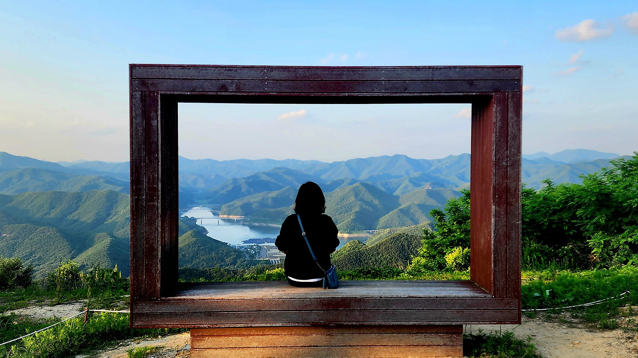산줄기는 겹겹이 힘차게 이어지고, 그 아래 잔잔한 호수가 파란 하늘을 반사하고 있다. 일연스님이 삼국유사를 집필하신 고찰인 인각사와 일연공원이 한눈에 들어온다. 아무런 생각 없이 한참을 내려다본다.