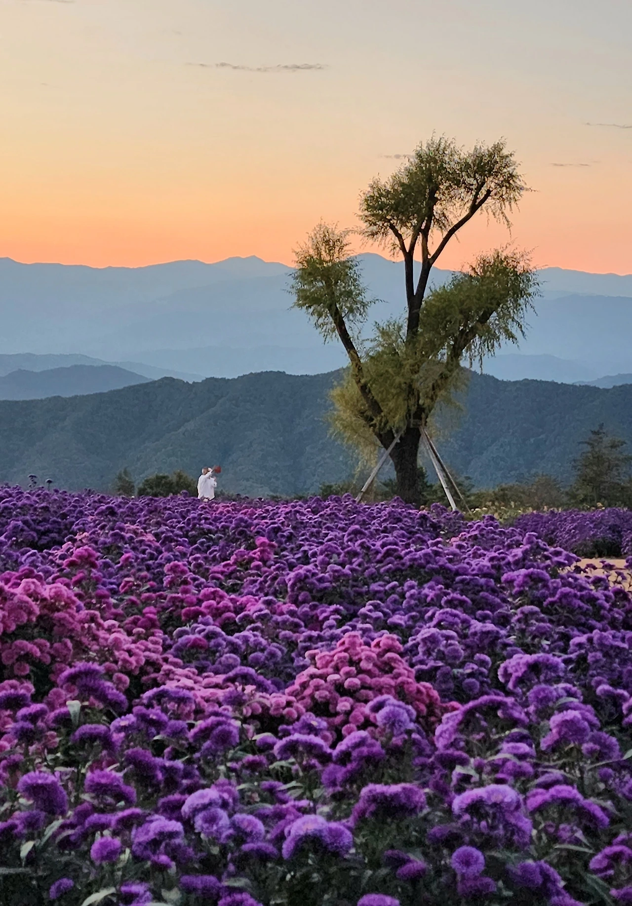 노을을 보기 위해 어느 가을 오후, 경남 거창 감악산으로 향했다. 혹시 도착이 늦을까 서둘러 차를 몰았다. 정상에 다다르니, 다행히 해가 넘어가기 전이다. 그런데 또 다른 아름다운 풍경이 우리를 반긴다. 산 봉우리가 온통 보랏빛으로 물들어 있다. 바로 아스타국화다. 감악산 정상에 풍력발전기를 만들면서 임도가 생겨났고, 군청에서는 그 너른 봉우리 위에 봄가을마다 꽃을 가꾸었다. 가을에는 산마루가 아스타국화로 가득 채워졌다. 보라색과 남색 그 사이, 중간중간에 분홍빛이 섞여 있어 더욱 아름답다. 주변에 억새와 야생 구절초까지 깊어지는 가을 정취를 더해준다.