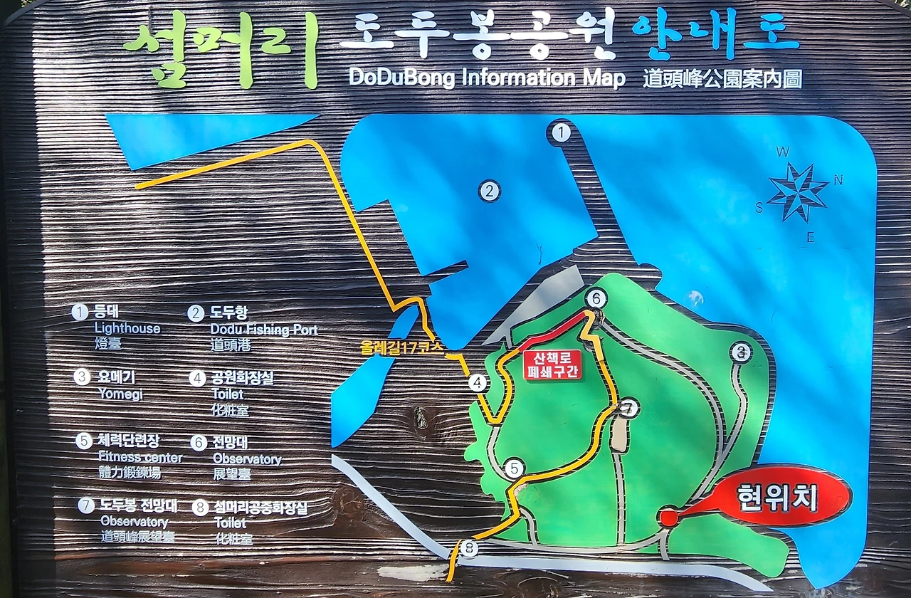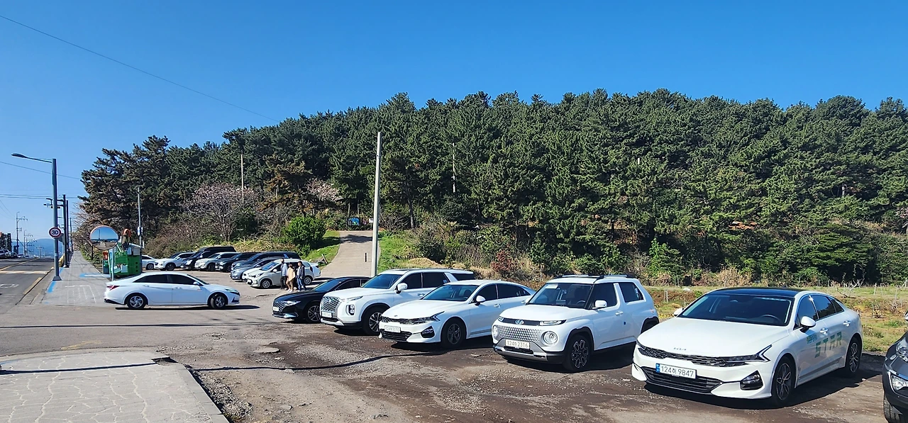 가는 길에는 스타벅스 같은 카페도 많다. 제주 바다를 보며 커피 한 잔의 여유를 만끽한다. 무지개 해안 도로가 끝날 무렵 도두봉 주차장이 나온다. 아주 넓지는 않지만 주차하기엔 충분하다.