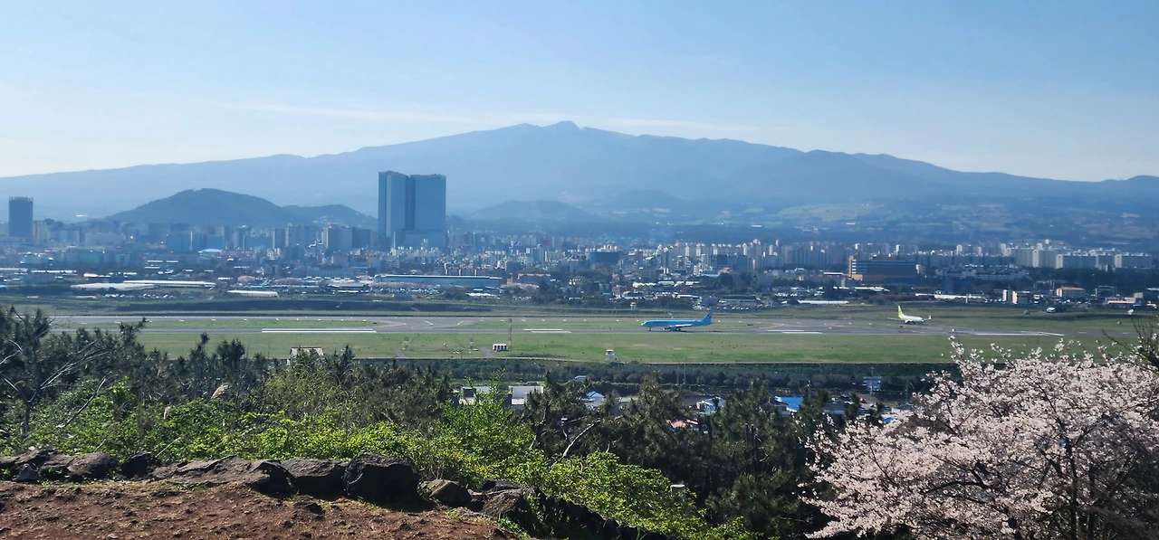 봄에는 벚꽃도 많이 핀다. 바다 구경, 산 구경, 공항 구경, 꽃 구경이 동시에 가능한 곳이 바로 도두봉이다. 공항 근처여서 부담도 없고, 근처에 식당과 카페도 많으니 탑승 전에 식사 해결도 가능하다. 또 대부분 렌터카 회사와 가까워서 차를 반납하고 바로 셔틀버스 타기에도 편하다. 그리고 무엇보다 짧은 시간 동안이지만 제주 바다와 한라산의 아름다운 풍경을 온전히 즐길 수 있다는 점이 좋다.