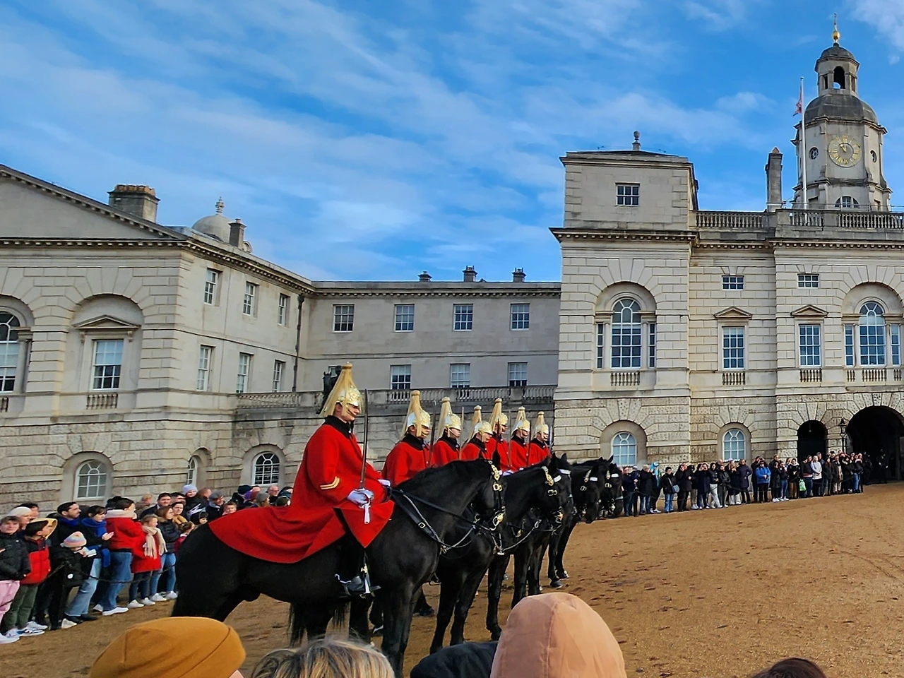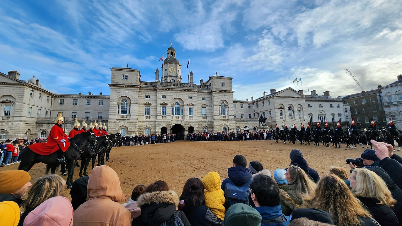 호수를 따라 기마병 교대식이 열리는 호스 가즈 퍼레이드(Horse Guards Parade) 지역으로 걸어갔다. 이 교대식에도 많은 관광객들이 몰렸다. 운 좋게도 딱 맞은 시간에 도착한 덕분에 구경할 수 있었다. 빨간 제복을 갖춰 입은 기마병들이 마주 보고 쭉 늘어서 있는 모습이 굉장하다. 말을 타고 임무를 제대로 수행할 수 있을지는 모르겠으나, 관광객의 눈길을 사로잡는 데는 충분하다.