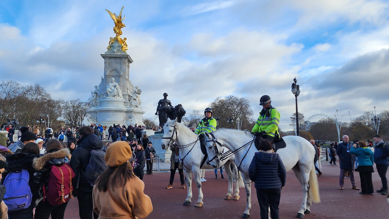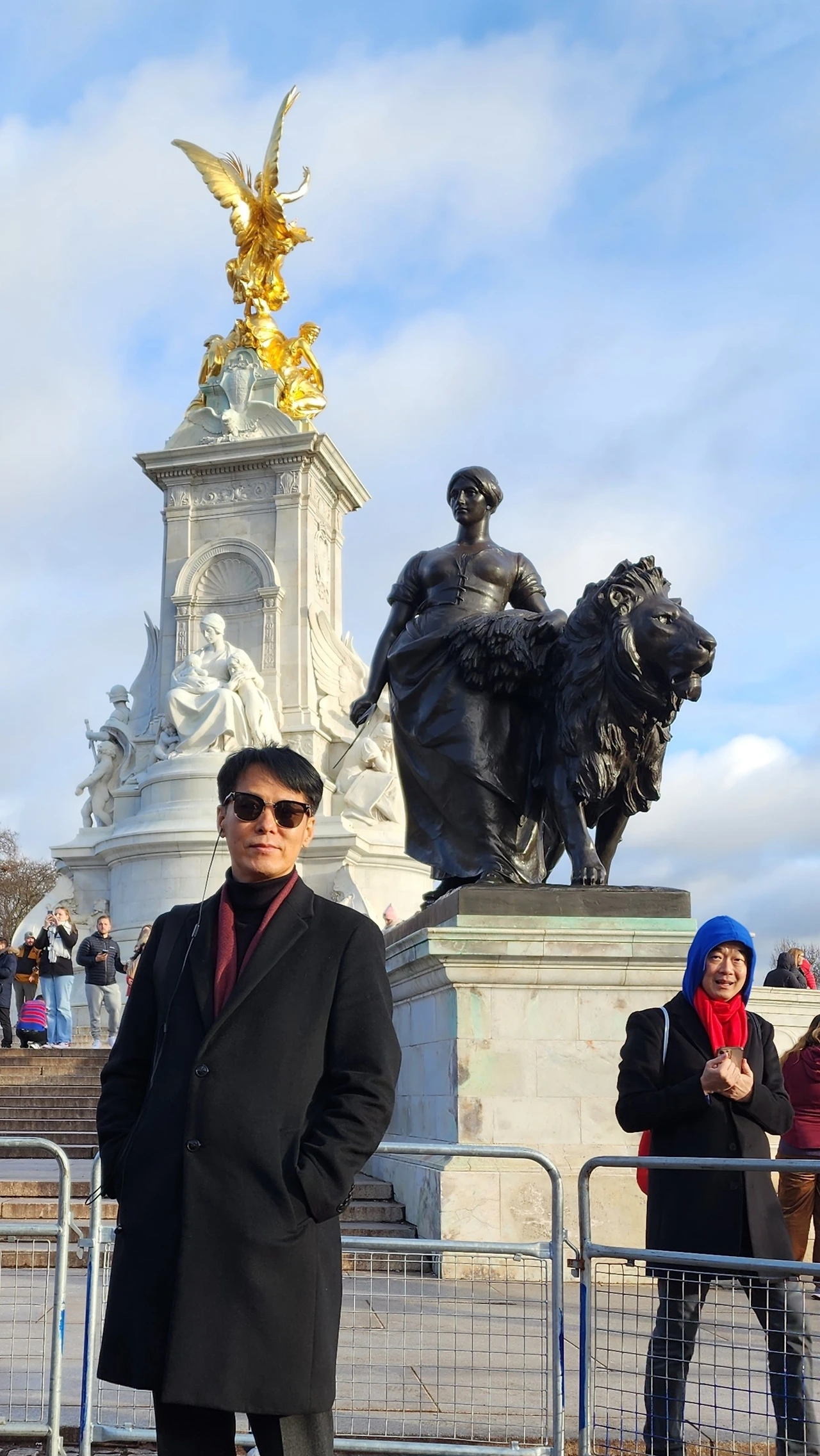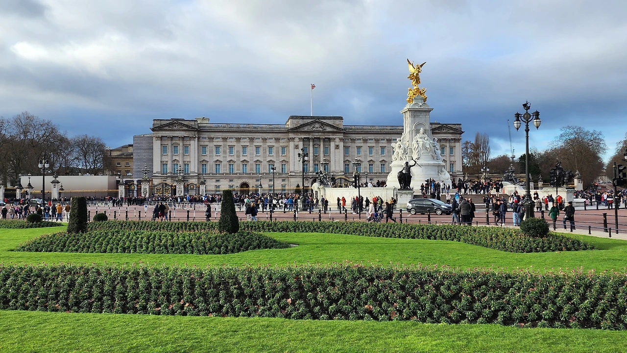 우리가 찾아간 이날은 국왕도 없고 찰스 왕세자(당시)도 연말 휴가 중이라 근위병 교대식이 없다고 한다. 그래도 버킹엄궁 앞 광장에는 전 세계에서 온 관광객들로 북적거린다. 버킹엄궁을 배경으로 인증 사진을 찍는 사람들로 가득하다.