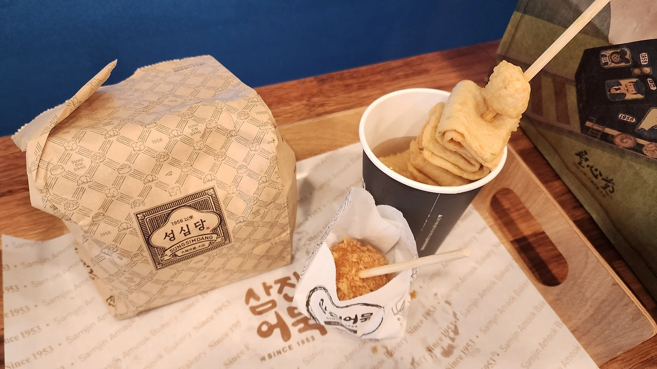 그래도 이미 시간이 20분 이상 흘러가버리는 바람에 소제동 나들이 계획은 접고 카페를 찾아본다. 그런데 부산을 대표하는 삼진어묵 매장이 눈에 들어왔다. 튀김소보로에는 우유나 커피가 잘 어울리지만, 어묵 국물과도 괜찮지 않을까. 새로운 도전 성공! 튀소와 어묵 국물, 의외의 조합이 꽤나 잘 어울린다. 1시간 대전 투어를 대신한 성심당과 삼진어묵의 콜라보도 예상외로 좋았다.