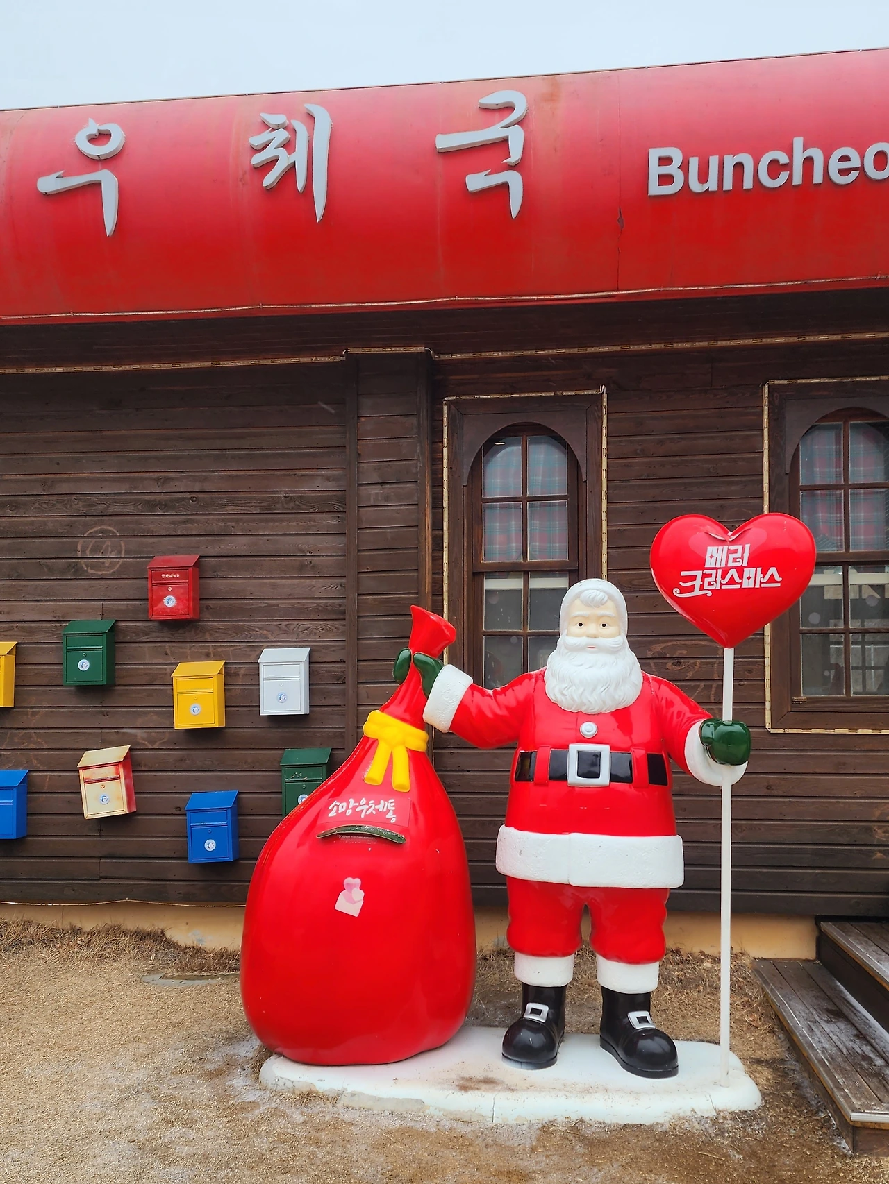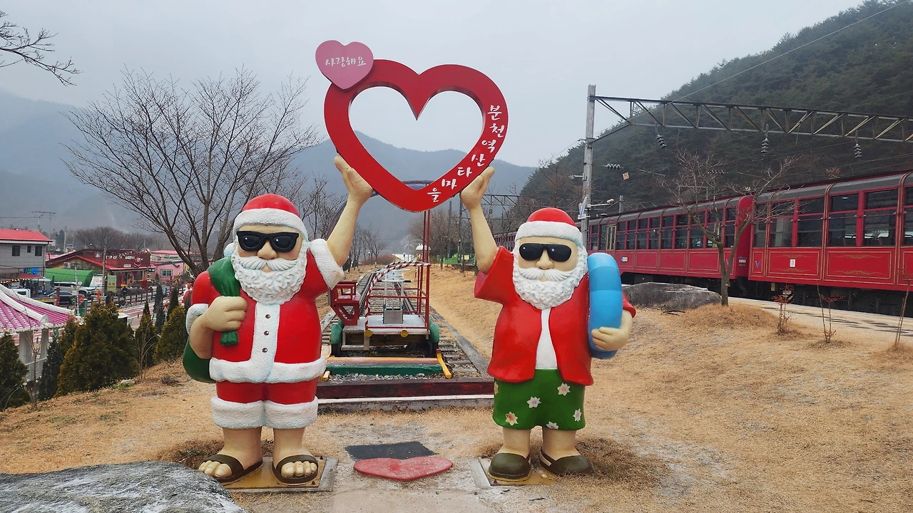 아주 크고 뾰족한 원통 모양의 트리 구조물이 크리스마스 분위기를 더해준다. 그리고 마을 곳곳에 산타할아버지들이 보인다. 물론 진짜 산타는 아니다. 그렇지만 분천역 일대에서 매년 열리는 산타 축제에서는 진짜 산타할아버지를 만날 수 있다. 심지어 산타의 나라 핀란드에서도 방문한다고 하니 다음에는 축제에 맞추어 방문해 봐도 좋겠다.