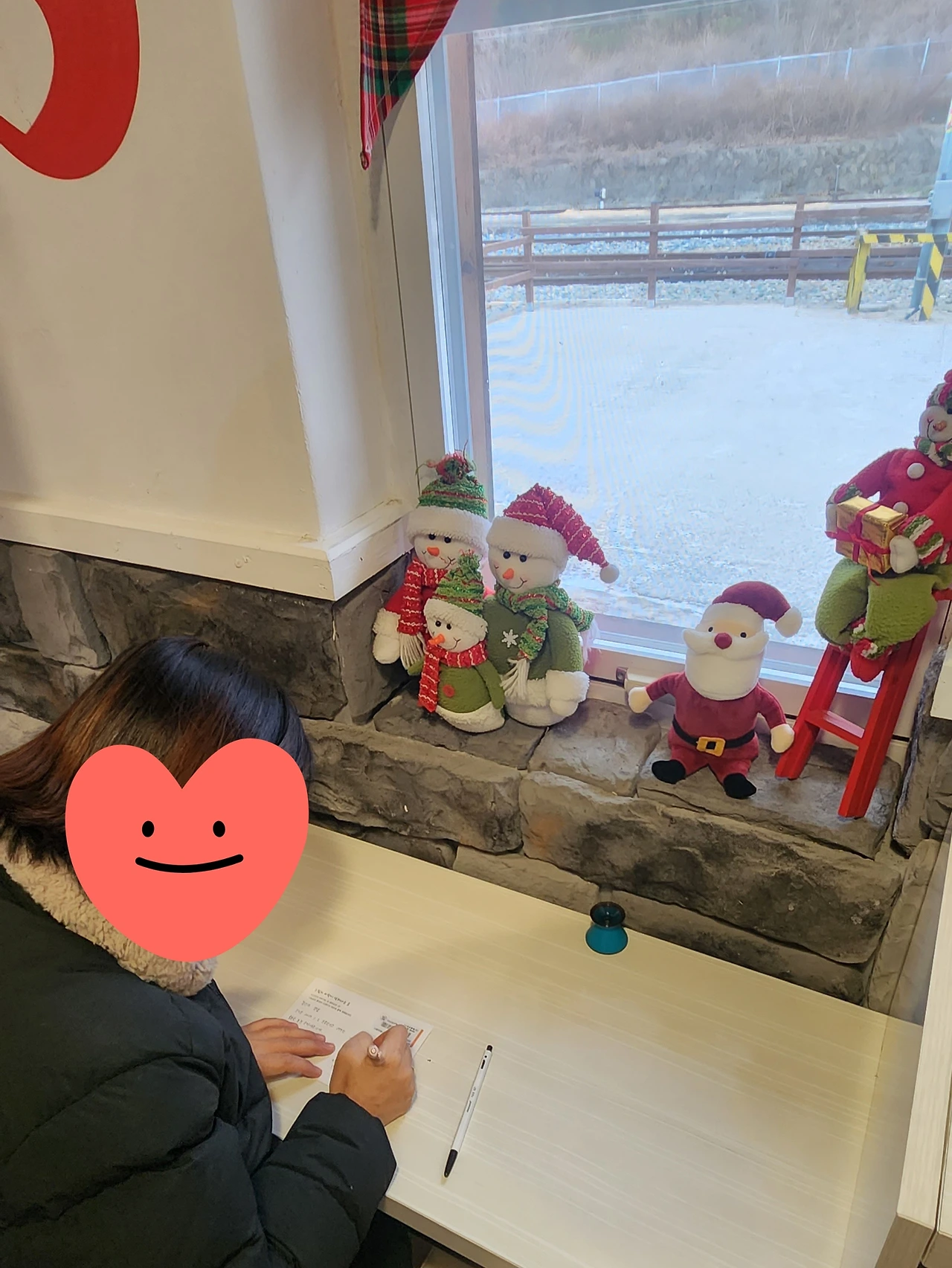눈 쌓인 바깥이 보이는 창가에 나란히 앉아 엽서 한 장씩 쓴다. 손글씨를 써본 지 오래되었지만 또박또박 글자마다 마음을 담아 본다. '느린 우체통'에 넣으면 내년 크리스마스에 배달이 되고, 그 옆 우체통에 넣으면 여행이 끝난 후에 받을 수 있다. 우리는 며칠 뒤에 받기로 한다. (실제로 며칠 뒤에 집으로 우리가 보낸 엽서가 도착했다. 각종 고지서 사이에 배달된 엽서가 반가웠다.)