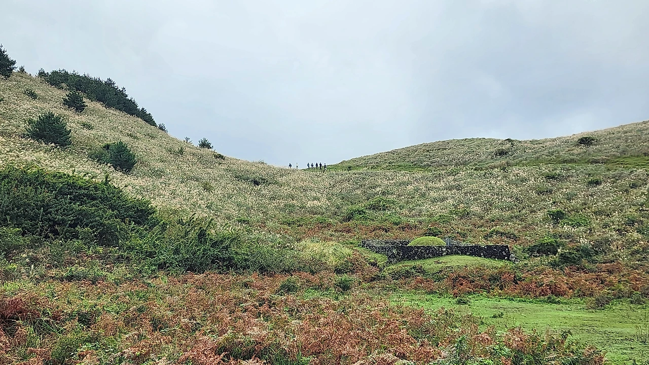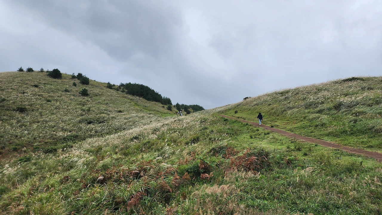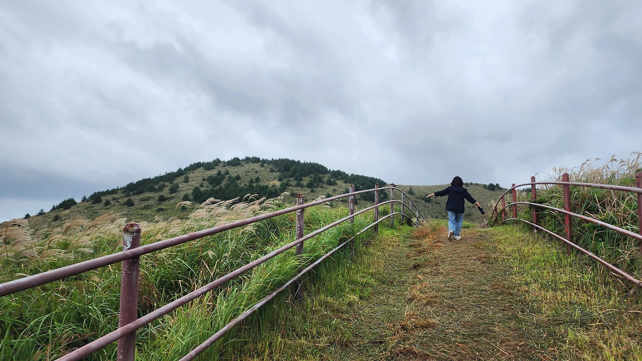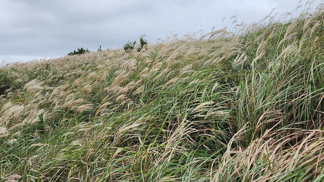오름 입구를 통과한다. 저 멀리 우의를 입고 앞서 오름을 오르는 이들이 보인다. 비는 그쳤지만 세찬 바람은 여전하다. 막 피기 시작한 갈대들이 바람에 일렁인다. 야자수매트를 따라 오름을 오른다. 누군가의 손길이 지나간 길은 깔끔하게 정돈되어 있었다.