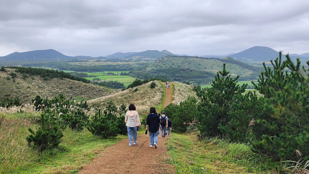 일요일 아침에 일어나자마자 호텔 창밖을 내다봤다. 하늘은 꾸물꾸물하지만 사람들은 우산 없이 걸어 다니고 있다. 호텔에서 오름까지 운전해 가는 동안에도 날씨는 변화무쌍하다. 빗방울이 떨어지다가 그치더니 햇살도 잠시 비친다.