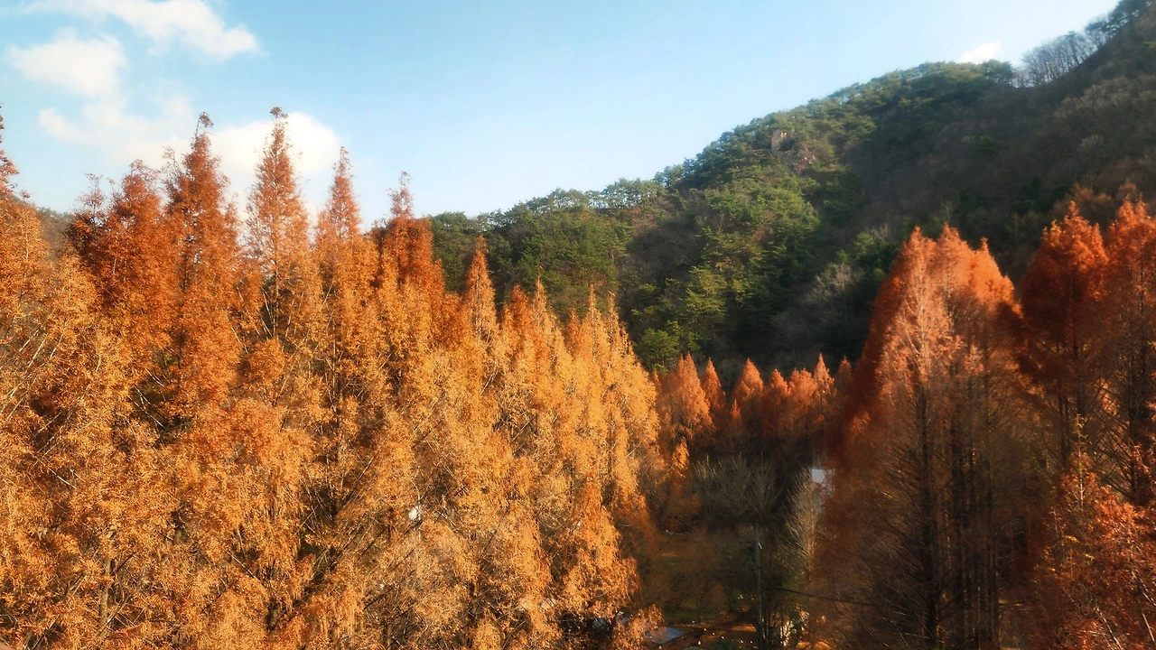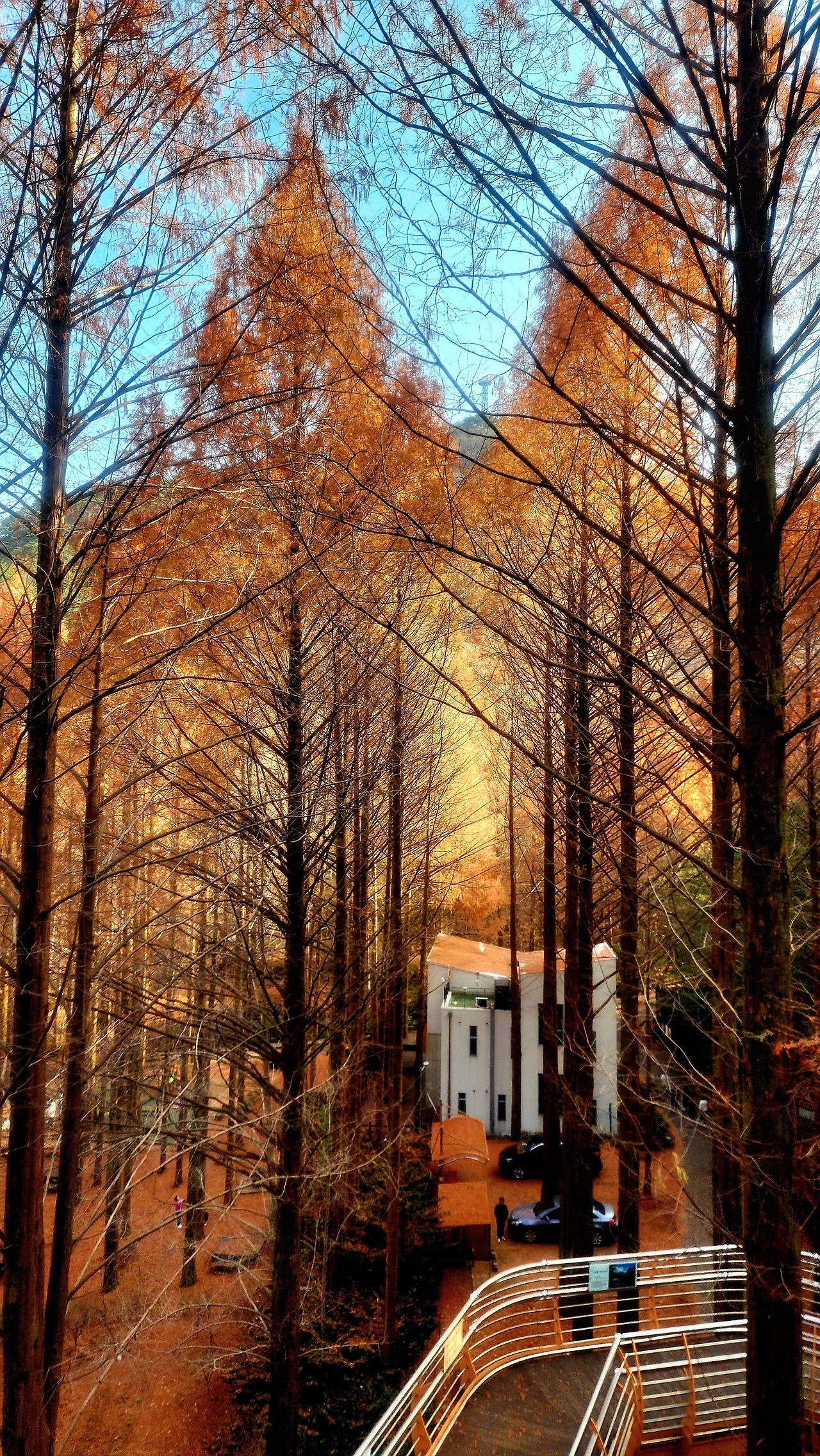 오늘따라 대전으로 가는 고속도로 주변에 메타세쿼이아나무들이 많이 눈에 띈다. 아직 주황색 단풍이 남아 있는 나무도 있고, 잎이 거의 떨어진 나무도 있다. 그래도 장태산에서는 단풍 구경할 수 있기를...