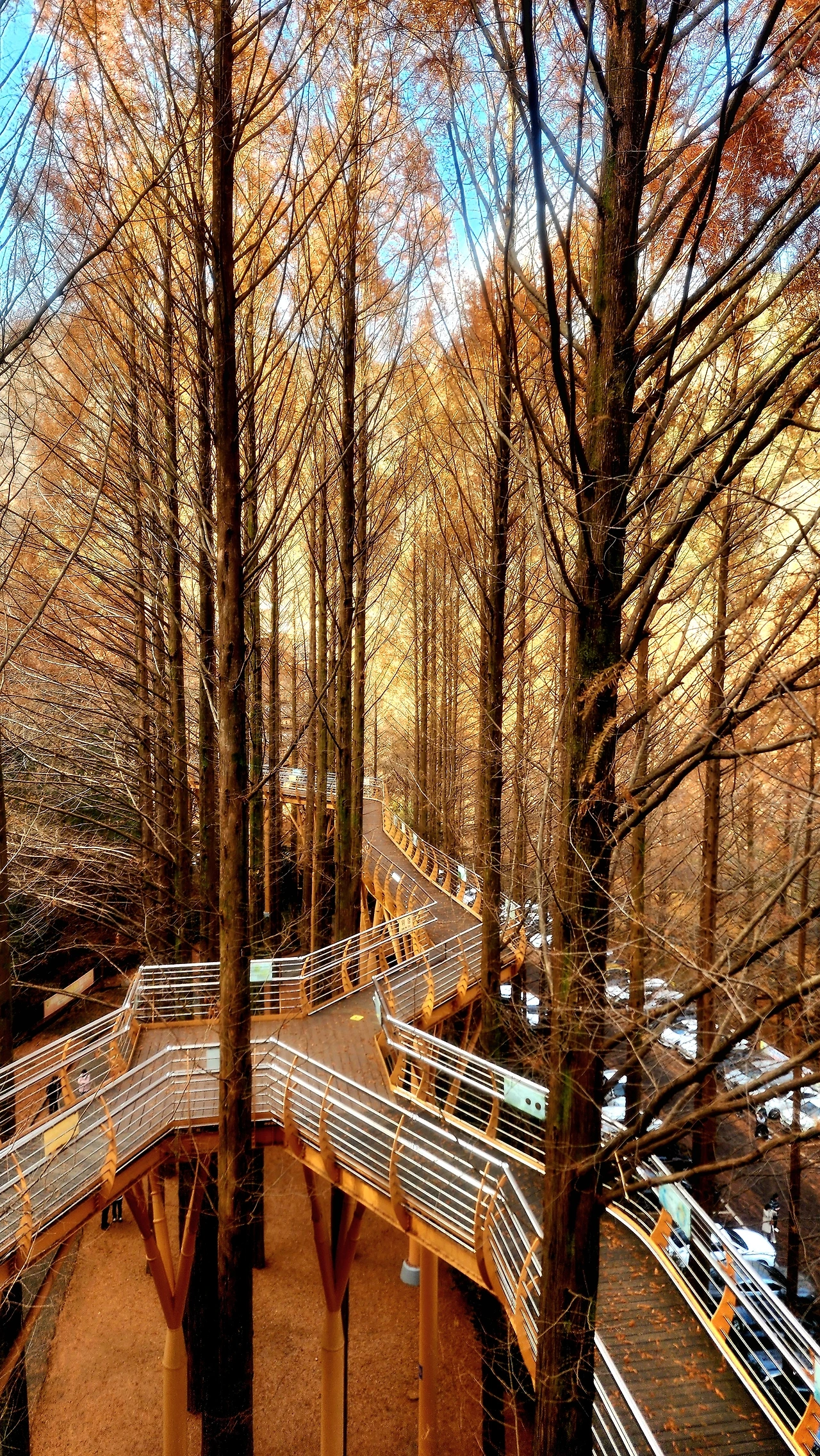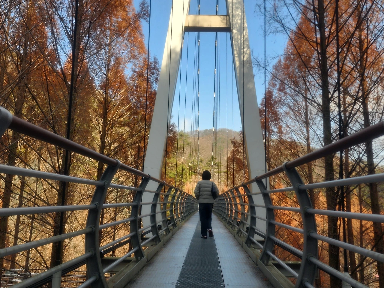 아쉽게도 나무 바로 옆에서 걸을 수 있는 스카이워크는 폐쇄되어 있다. 계절상 미끄럽고 위험하여 운영을 중지한다는 안내가 붙어 있다. 아쉽지만, 곧바로 출렁다리로 올라간다. 텐션이 올라간 목소리들이 여기저기 들린다. 재밌게도 한국어 외에도 영어, 중국어, 베트남어 등 들리는 다양한 언어마다 즐거움이 묻어 있다.