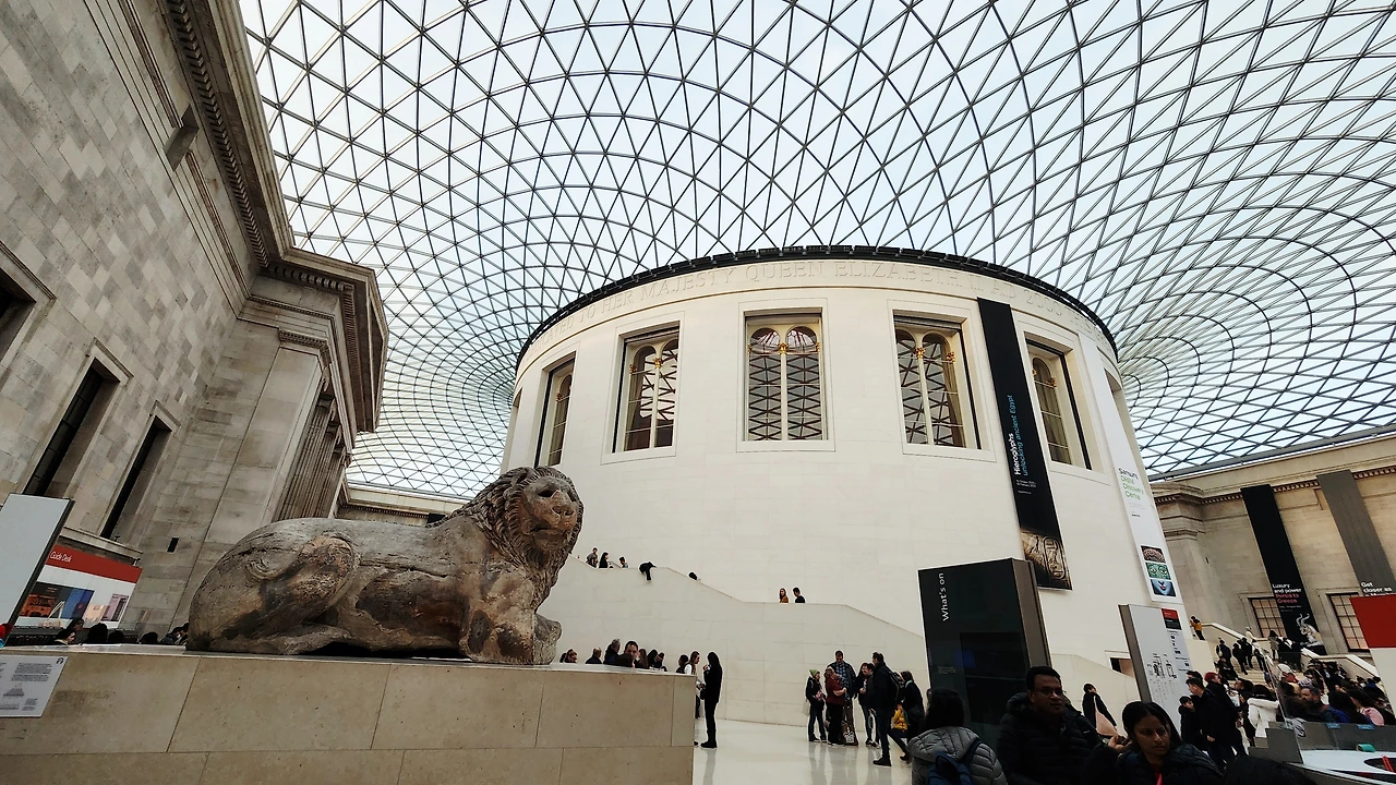 전시관 관람이 끝나고 크니도스 사자상이 있는 영국박물관 중앙 홀, 그레이트 코트로 나왔다. 이곳은 기념품 판매점, 푸드코트, 오디오 가이드 대여점 등이 있는 넓은 공간이다. 그레이트 코트는 유리로 된 원형의 천장 지붕으로 덮여 있는데, 2000년 밀레니엄 프로젝트의 일환으로 만들어진 세계적 건축가 노먼 포스터의 작품이다. 한눈에 봐도 멋있다.
