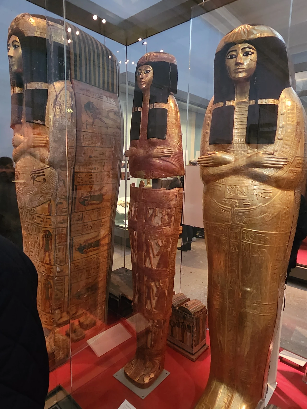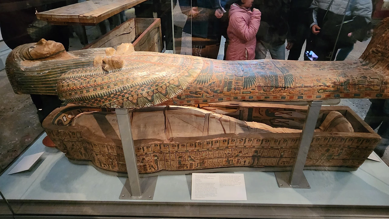 이집트관에는 수많은 미라 모형과 목관이 전시되어 있었다. 그 유물 수가 많아도 너무 많다. 박물관을 통틀어 가장 많은 사람이 몰려 있는 이 구역의 관람객 수만큼이나 유물의 양이 엄청났다. 그저 양적으로 너무 압도적이라는 느낌만 들어서 오히려 다른 감흥을 느끼기 어려울 정도였다. 이토록 많은 유물은 어찌하여 지중해를 건너 이곳까지 오게 된 걸까?