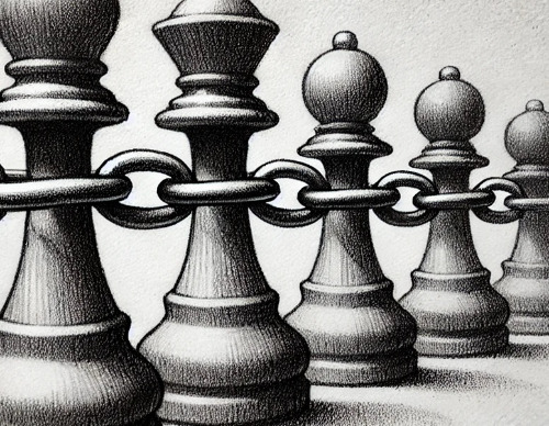 폰은 마치 개미와 닮았다. 개미는 혼자서는 보잘것없지만, 군집을 이루면 엄청난 힘을 발휘한다. 폰도 마찬가지다. 서로를 지켜줄 때 비로소 강력한 힘을 발휘하는데, 이를 폰 체인이라고 한다. 폰 체인은 대각선으로 서로를 지지하며 안정성과 균형을 유지하는 구조로, 폰들이 서로를 보호하며 전진할 수 있는 발판이 된다.