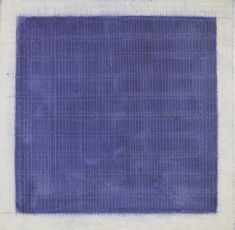 말하자면 스스로를 그림을 만들어내는 존재로 보기보다 그림을 받아 적는 사람에 가깝게 여겼다. 그렇기 때문에 맑아진 상태에서 떠오르는 이미지를 신뢰했으며 같은 격자나 같은 선을 계속 그리는 것은 작가에게 있어 마음이 흐트러지지 않게 하기 위한 하나의 장치이기도 했다.
