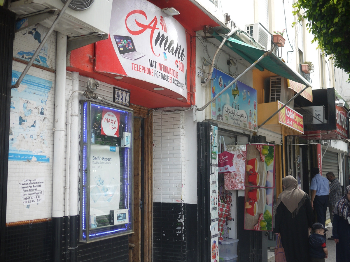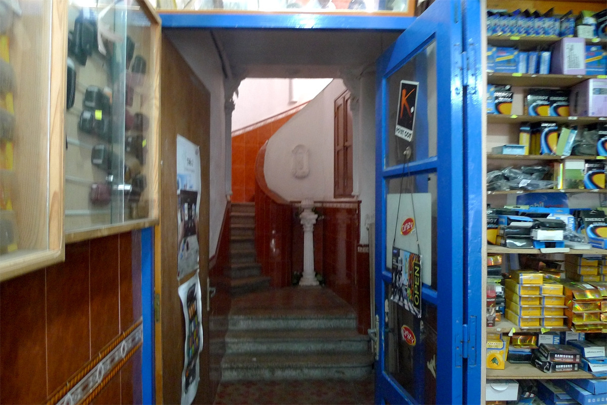 2013년에 찍은 93번지 건물의 전경그 여러 상점들 중 나는 휴대폰 가게에 들어갔고, 넉살 좋아 보이는 가게 주인에게 질문을 했다.