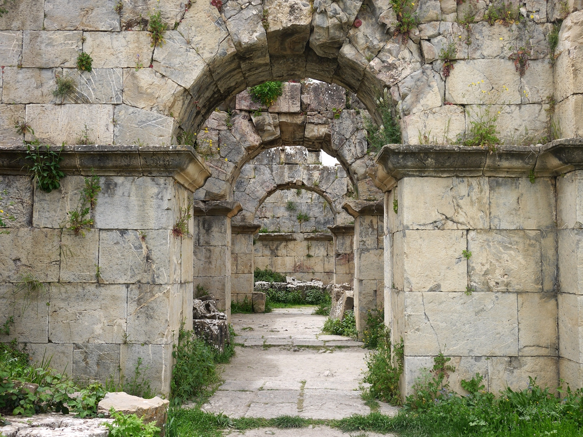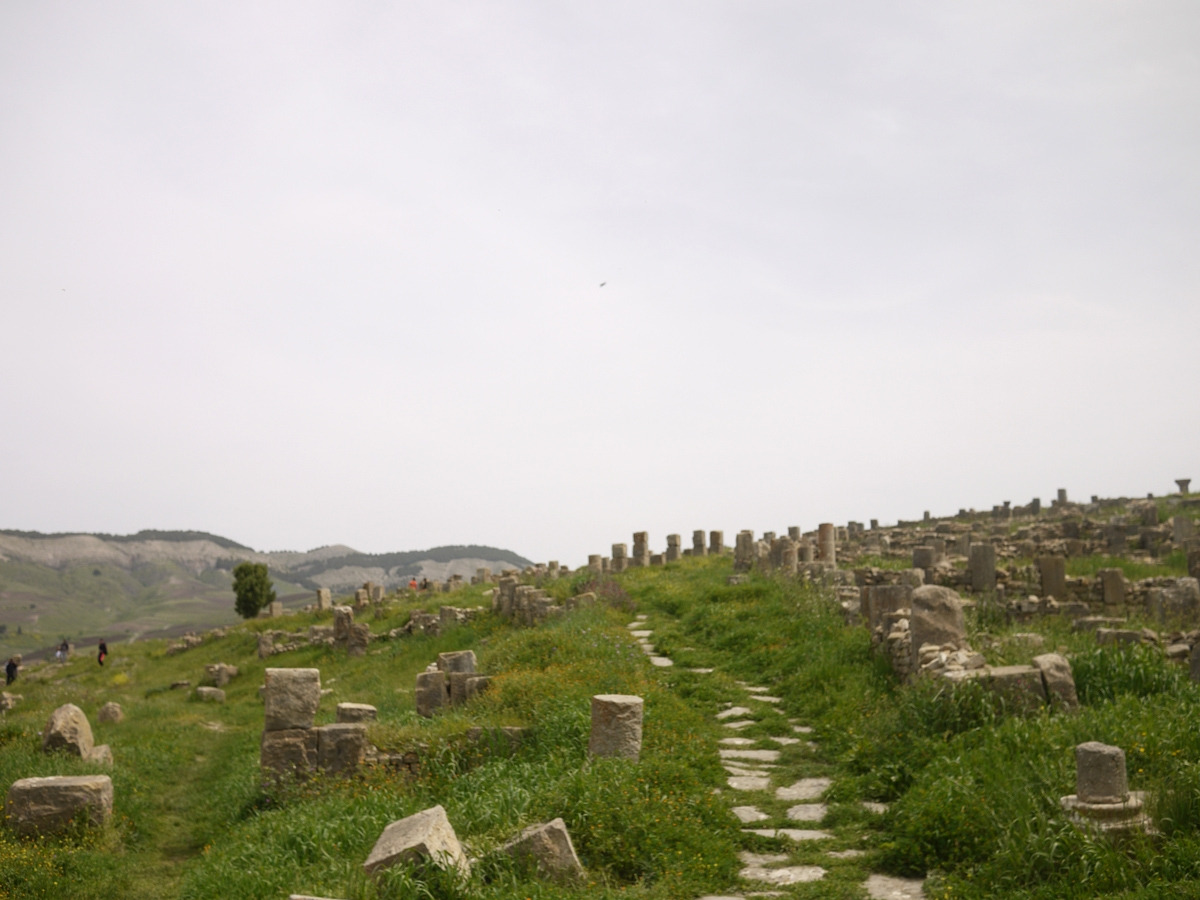 구릉에 마치 묘지 비석처럼 세워진 기둥들. 기둥 사이가 촘촘한 곳은 서민의 주거지역이었을 가능성이 높다.단단하고 큰 돌들로 이루어진 대로를 따라 걸었다. 모든 길은 로마로 통한다고 하지만, 지중해를 넘어야 로마에 갈 수 있다.