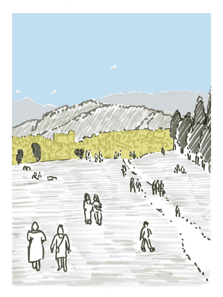 중앙 부근을 지나쳐 좀 더 아래로 내려갔다. 작은 광장과 같은 공간에서 어느 음악가들은 연주를 하고 있었는데, 구경하는 이들은 모두 어린이들이라 내가 아니었으면 그들은 한 푼도 벌지 못했을 것이다.