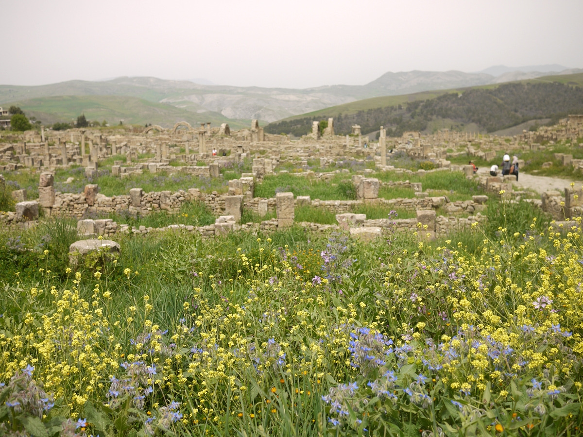 색색의 꽃들로 유적지의 돌이 가리기도 한다제밀라는 흔히 다른 로마 유적 도시인 팀가드 Timgad와 자주 비교되는데, 팀가드에 비해 이 곳은 규모가 작지만 보다 아기자기한 느낌을 준다. 팀가드를 우리나라 경복궁에 비교한다면, 제밀라는 창덕궁에 비할 수 있을 것 같다. 아무래도 제밀라의 경우는 구릉이 많아 쉽게 그 규모를 확장하기 어려웠을 것이다.