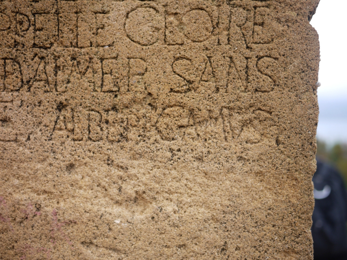 티파자에 있는 그의 기념비에 적힌 그의 이름은 누군가에 의해 훼손되어 있다