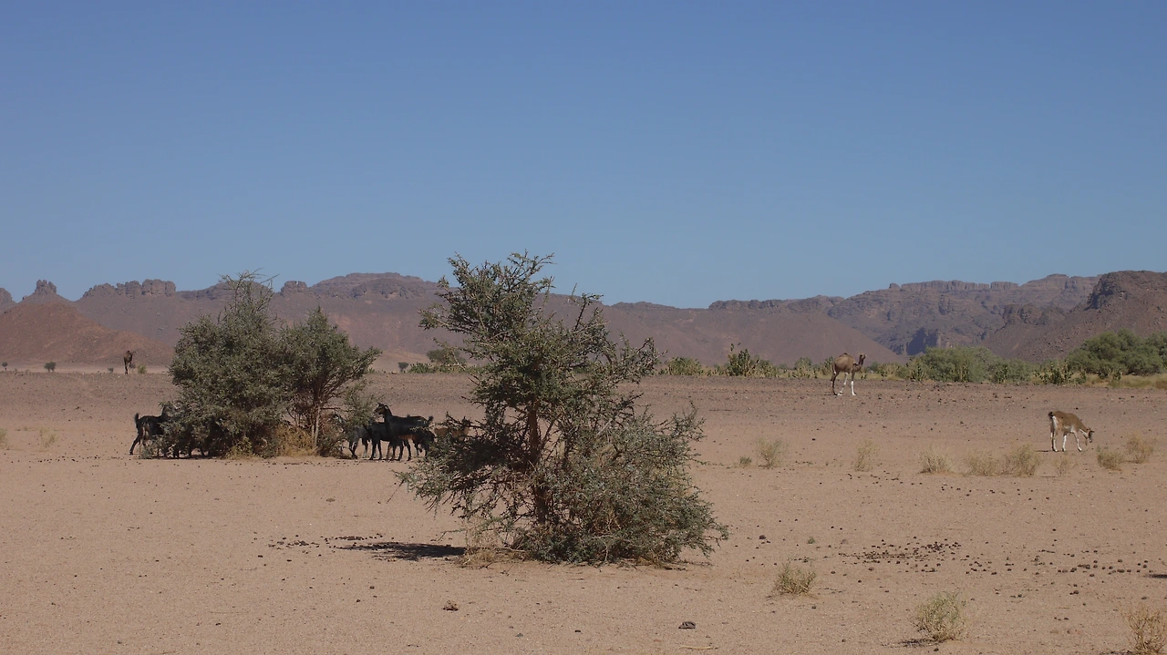 아프리카 자넷에서 찍은 사진. 여러 동물들이 나무에 들러붙어 잎을 뜯어먹고 있었다.