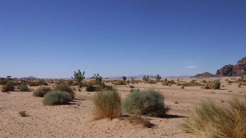 그렇다면 주변에 물이 존재하는지 알 수 있는 방법은 무엇일까. 나의 방법은 식물의 존재 유무이다. 사방이 다 건조하고 황폐한 땅인데 희한하게 녹색의 나무들이 무성하게 자라고 있다면, 그 밑에는 아마도 물이 흐르고 있을 가능성이 크다. 사하라의 이곳저곳은 지표면 아래에는 대수층이 흐르는 경우가 꽤 있다.