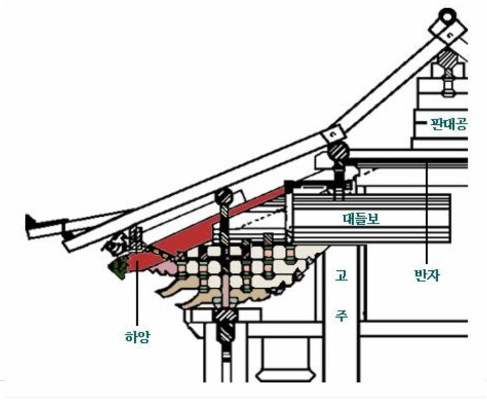 화암사 극락전이 가지고 있는 타이틀이 있다. 우리나라 유일의 ‘하앙구조’ 목조건물이란 거다. 하앙이란 처마와 기둥 사이의 공포와 달리, 천장 내부에서부터 서까래와 같은 방향으로 길게 뽑아 공포 부분에서 지렛대와 같은 작용을 하여 처마를 길게 빼는 역할을 하는 부재를 말한다. 하앙을 통해 처마를 길게 빼다 보니 건물 내부에 빛이 적게 들어올 수 있도록 만들 수 있어 햇빛이 많이 들어오는 더운 지역에서 주로 사용하였다. (처마를 길게 빼다 보니 많은 양의 비에도 견딜 수 있다) 그래서 우리나라보다는 중국과 일본에서 많이 사용되었다. 화암사 극락전이 발견되기 전까지 일본에서 중국의 ‘하앙구조’를 바로 들여왔다는 주장을 펼치기도 했다.
