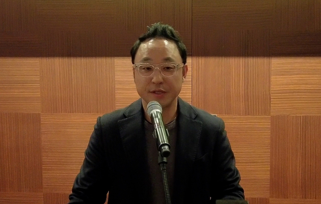 서울 중구 신라호텔 마로니에홀에서 진행된 '품(Poom)' 이취임식에서 3대 의장으로 선임된 성재용 르뗀갤러리 대표가 인사말을 하고 있다.