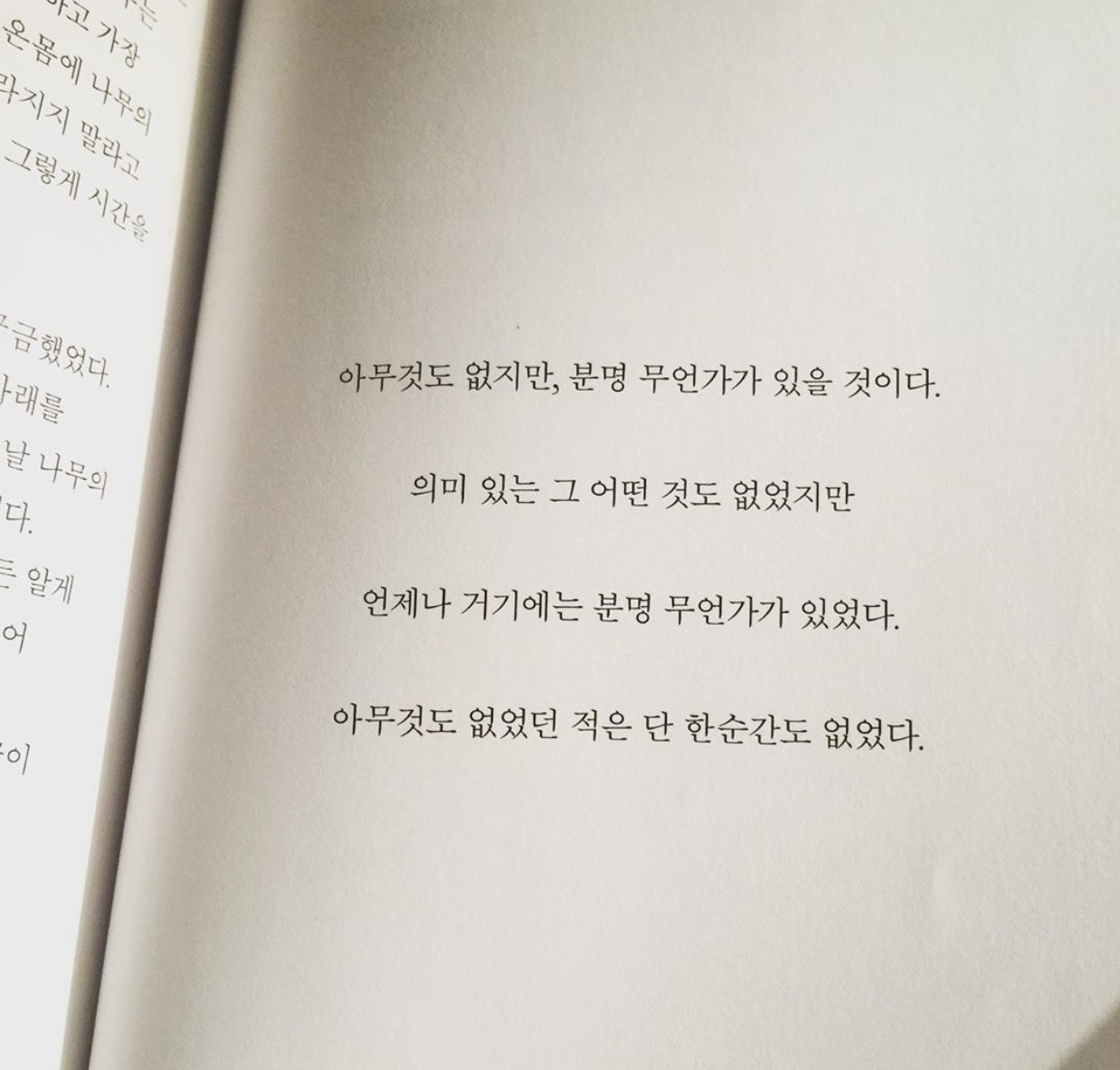 온 계절 동안 아름다운 향을 뿜는 이 나무의 이름이 궁금했었다. 그러나 누구도 나에게 그것에 대해 알려주지 않았다. 나무 아래를 지나는 사람들에게 물었다. 그러나 아무도 알지 못했다. 어느 날, 나무의 이름을 알게 되었을 때, 이곳에서 더 이상의 향기를 맡을 수는 없었다. 어떤 누구도 내게 그것을 알려주지 않았지만, 결국에는 어떻게든 알게 되었다. 애쓰지 않고 그저 향기를 맡았을 뿐이었는데, 간절히 알고 싶어 하던 것을 알게 된 것이다. 그러자 그때, 내가 사랑했던 이 계절은 끝났고, 다른 계절의 걸음이 다가왔다. 그렇게 이 계절의 향기는 끝이 났다.