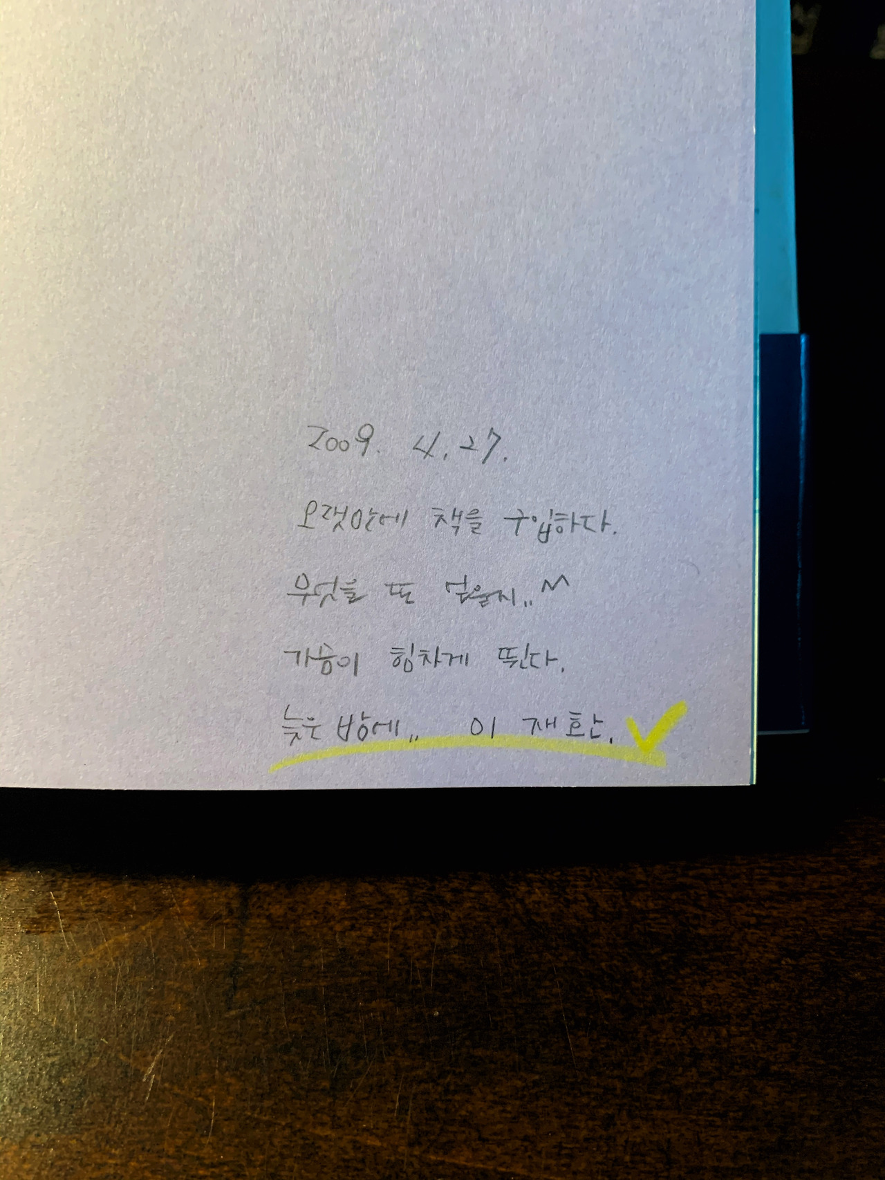 2009.4.27. 오랜만에 책을 샀다. 무엇을 또 얻을지. 가슴이 힘차게 뛴다. 늦은 밤에….