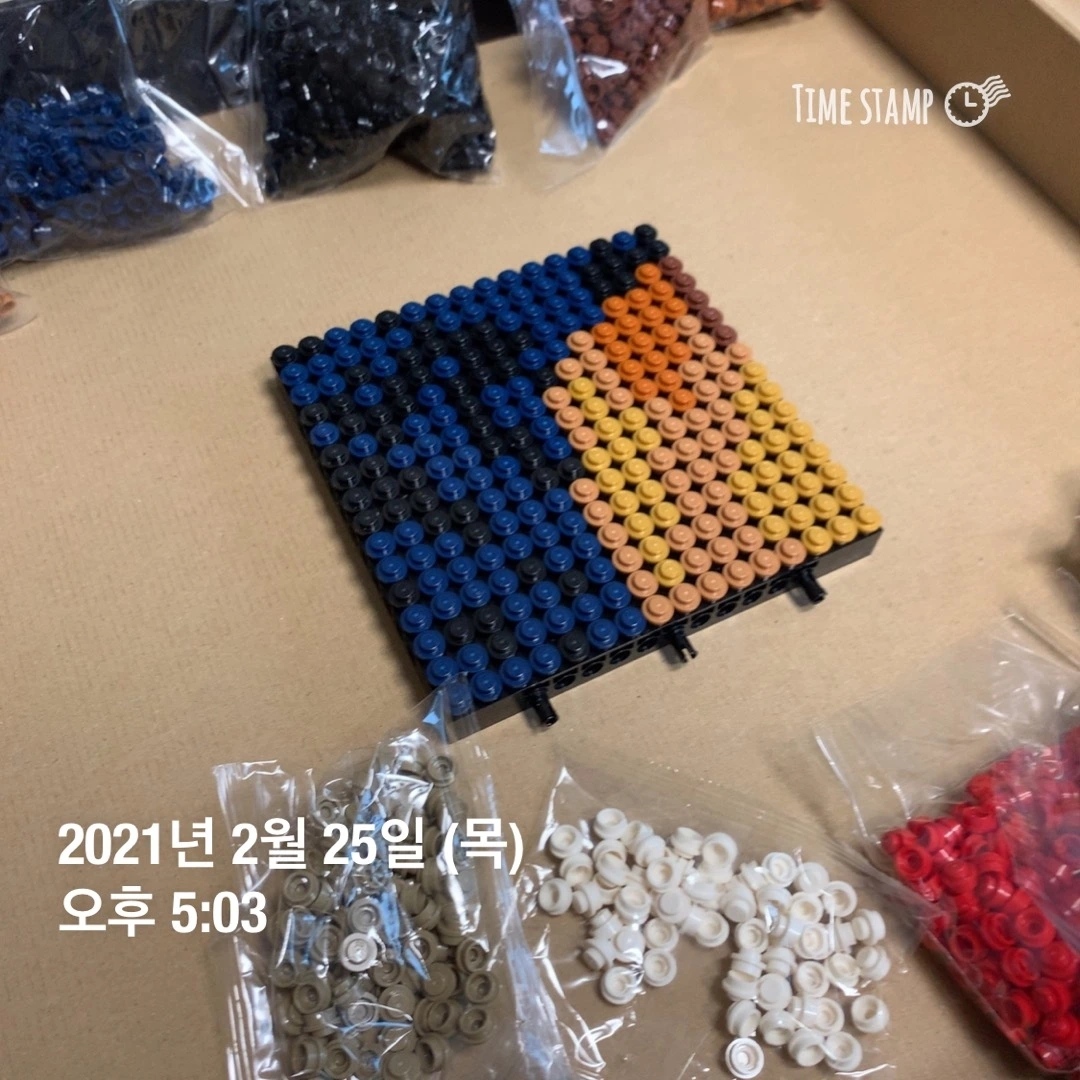 사진으로 보면 아시겠지만, 이건 기존의 레고를 만드는 것과 다릅니다. 원래 레고가 블록을 쌓아서 만드는 것이라면 이건 미술처럼 하나씩 붙여서 만들어야 합니다.