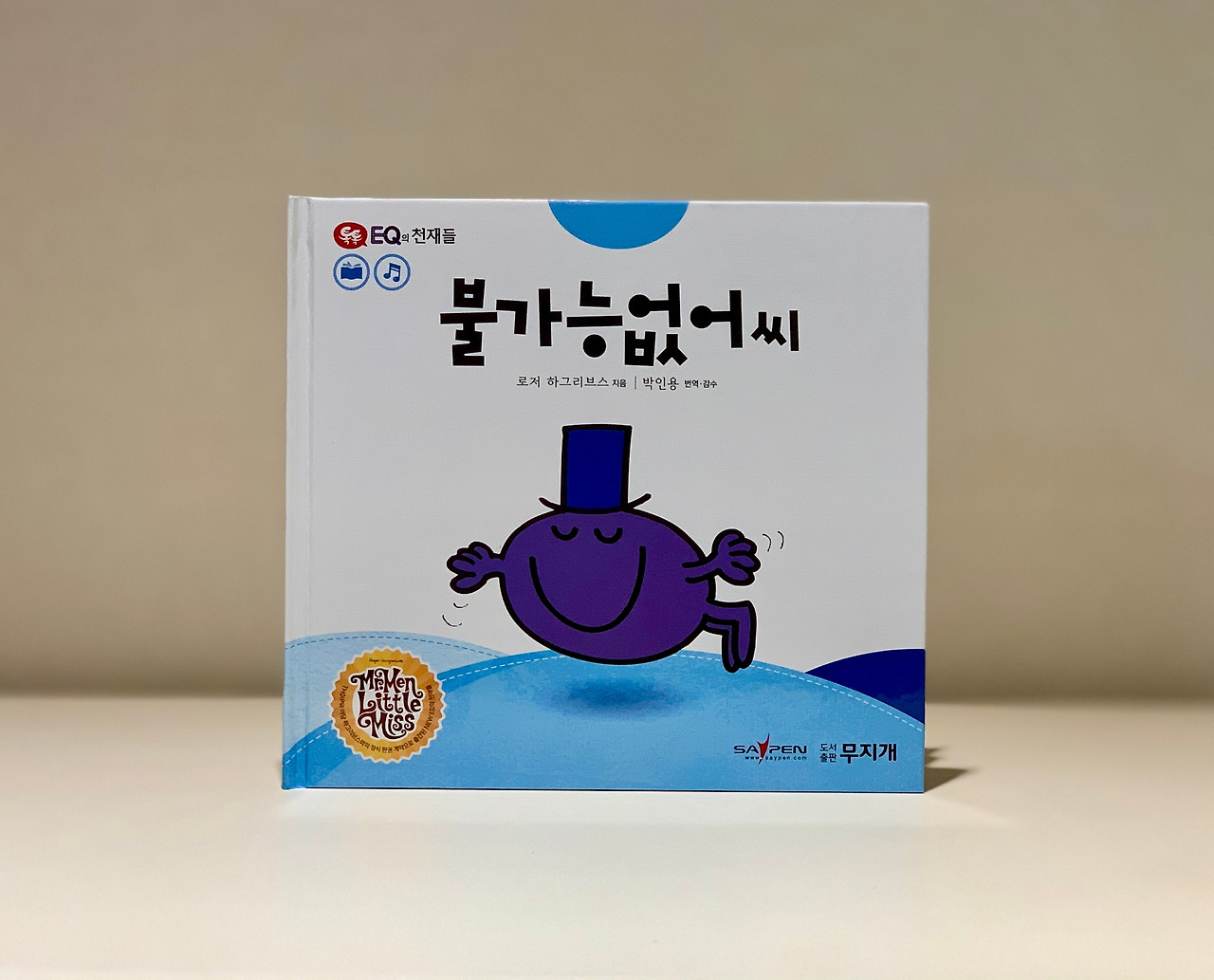 아들은 게임을 하면서 여유롭게 아빠를 격려합니다. "아빠, 불가능은 없어요! 끝까지 포기하지 않으면 이길 수 있어요." '불가능'이란 말을 어디서 들었냐고 물어봅니다. 엄마가 읽어준 책에서 보았다고 말하네요. 바로 이 책입니다. EQ의 천재들이라는 시리즈의 <불가능은 없어씨>, 책의 주인공인 '불가능은 없어씨' 표정에서 여유가 가득 느껴지네요. 이 시리즈는 인간의 다양한 감정에 대한 이야기입니다. 행복씨, 엉뚱씨, 장난씨, 웃음양, 멋져양 등의 다양한 캐릭터가 나와서 감정에 대한 이야기를 해줍니다.