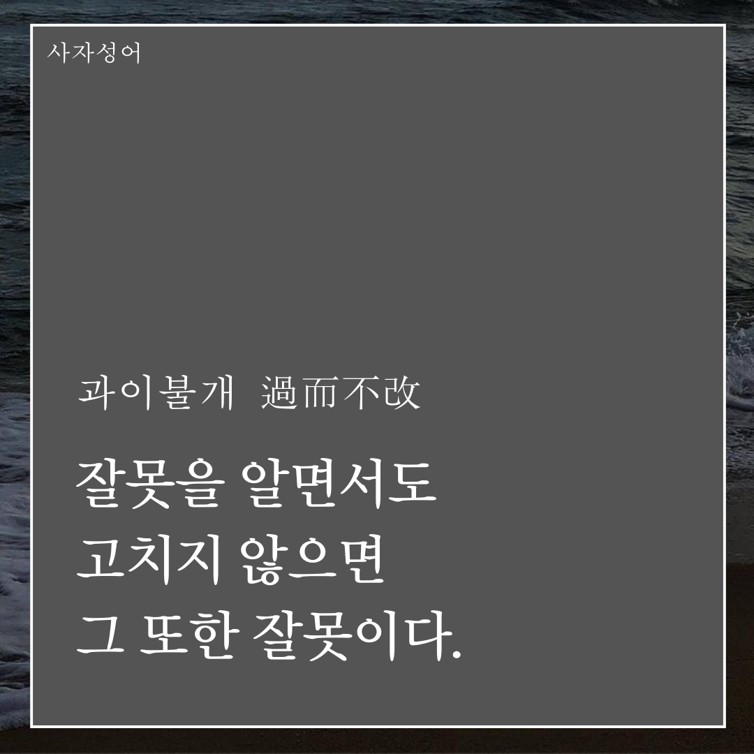 잘못을 알면서도 고치지 않으면 그 또한 잘못이다.