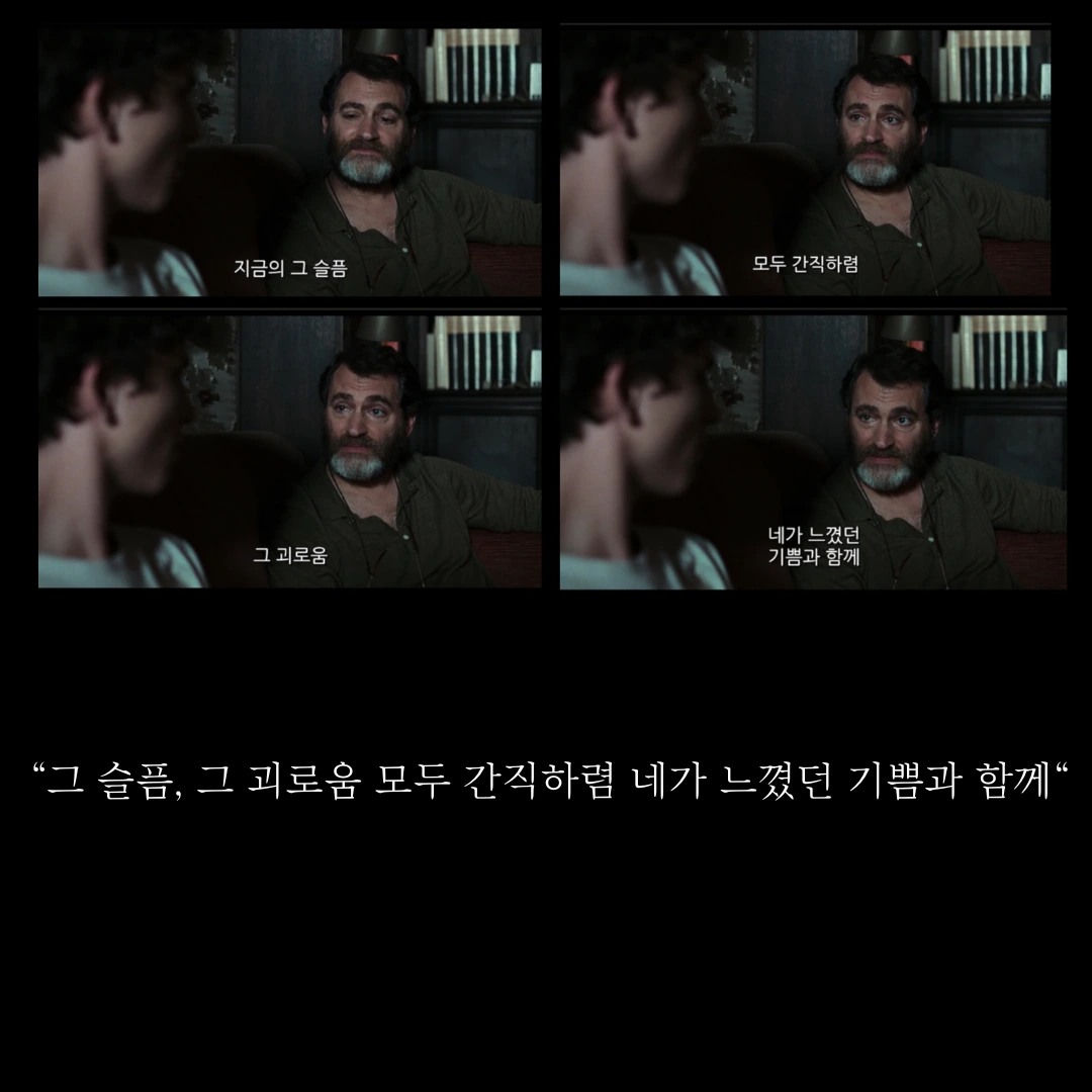 “그 슬픔, 그 괴로움 모두 간직하렴 네가 느꼈던 기쁨과 함께“