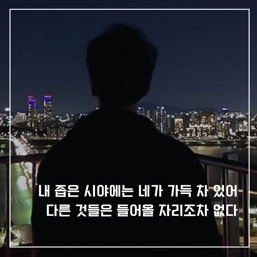 내 좁은 시야에는 네가 가득 차 있어 다른 것들은 들어올 자리조차 없었다.