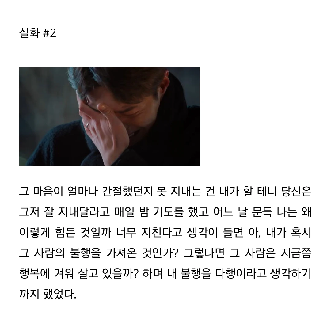 그 마음이 얼마나 간절했던지 못 지내는 건 내가 할 테니 당신은 그저 잘 지내달라고 매일 밤 기도를 했고 어느 날 문득 나는 왜 이렇게 힘든 것일까 너무 지친다고 생각이 들면 아, 내가 혹시 그 사람의 불행을 가져온 것인가? 그렇다면 그 사람은 지금쯤 행복에 겨워 살고 있을까? 하며 내 불행을 다행이라고 생각하기까지 했었다.
