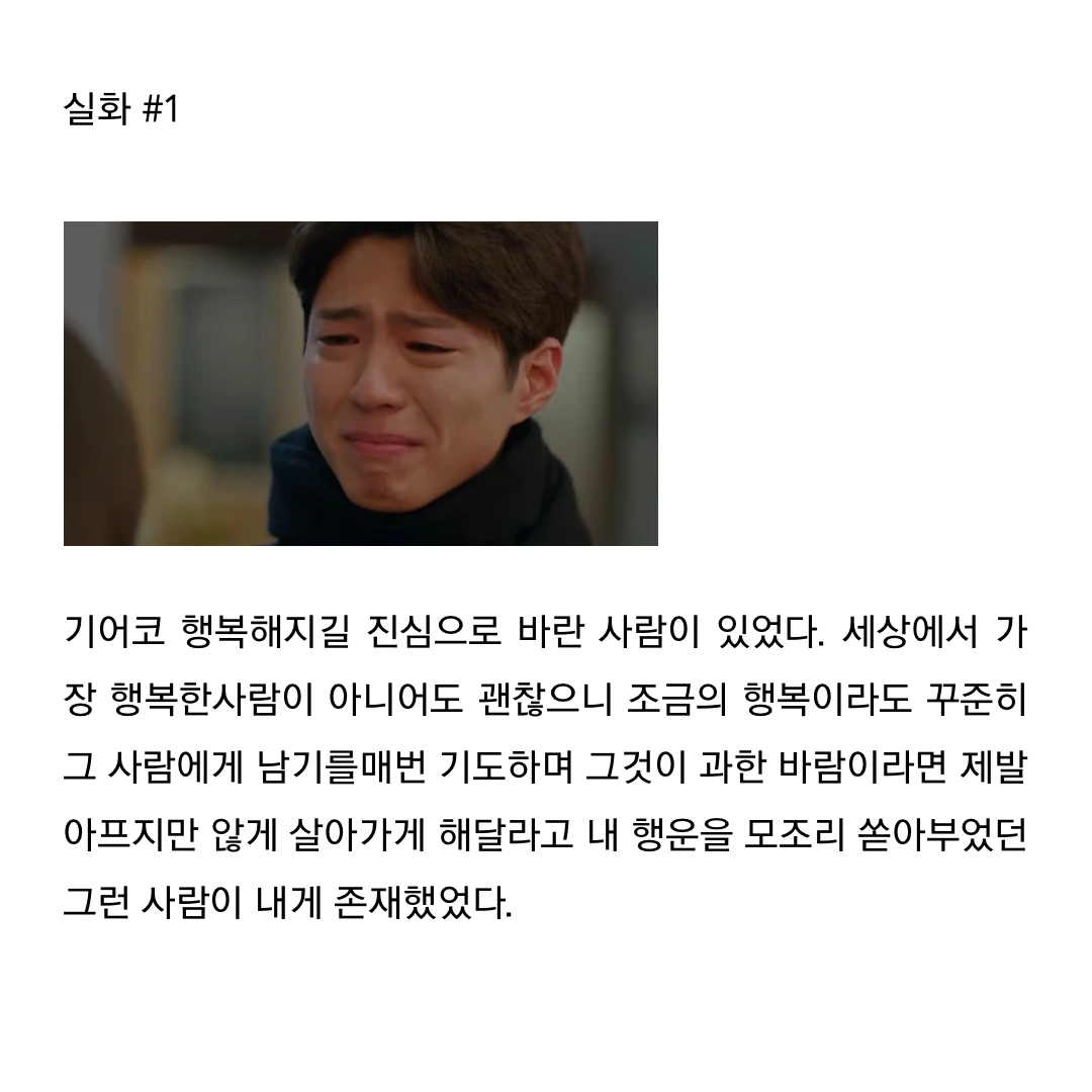 기어코 행복해지길 진심으로 바란 사람이 있었다. 세상에서 가장 행복한 사람이 아니어도 괜찮으니 조금의 행복이라도 꾸준히 그 사람에게 남기를 매번 기도하며 그것이 과한 바람이라면 제발 아프지만 않게 살아가게 해달라고 내 행운을 모조리 쏟아부었던 그런 사람이 내게 존재했었다.